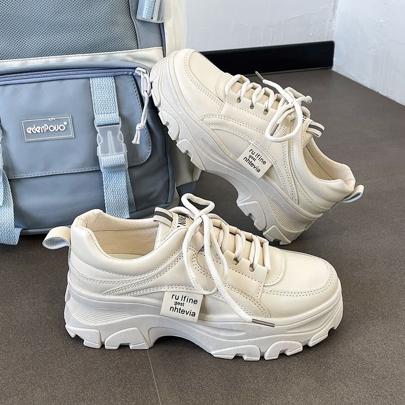 TIKP พร้อมส่ง🚚รองเท้าผ้าใบผู้หญิง พื้นหนา แฟชั่น sneaker เพิ่มความสูง กีฬาลำลอง มีเชือก