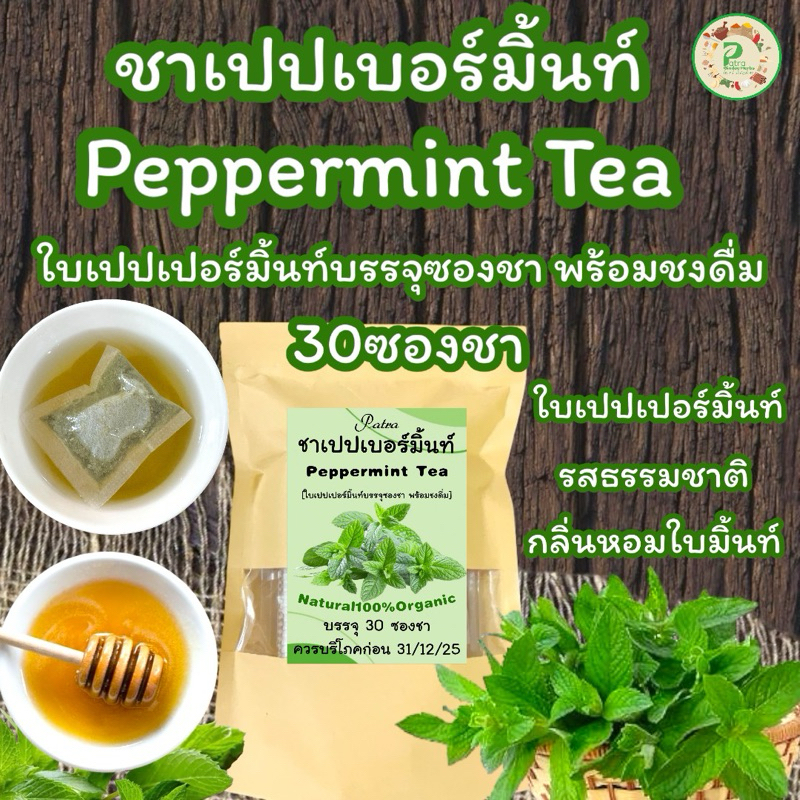 ชาเปปเปอร์มิ้นท์ บรรจุ 30 ซองชา [Peppermint Tea 30 Piece] ใบมิ้นท์ดื่มแล้วรสชาติธรรมชาติ กลิ่นหอมมิ้นท์ธรรมชาติ ส่วนประกอบ:ใบมิ้นท์100% วิธีชงดื่ม : 1 ซองชาแช่ในน้ำร้อน 1 แก้ว (แช่5-10 นาที ใช้ช้อนนวดซองเบาๆ เพื่อให้ละลาย ดื่มได้เป็นประจำ เช้า-เย็น) วิธีการเก็บ : ปิดถุงให้สนิททุกครั