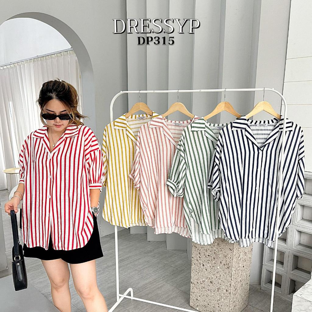 DP315 เสื้อเชิ้ต คอปก ผ้าสลาฟทอ ริ้วใหญ่ ทรงสวย เเมชง่าย ใส่สบาย