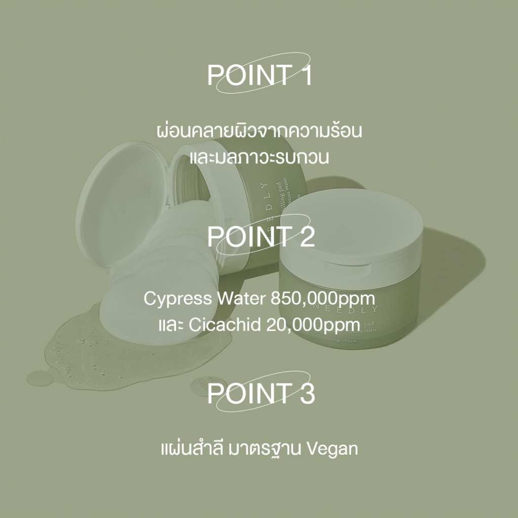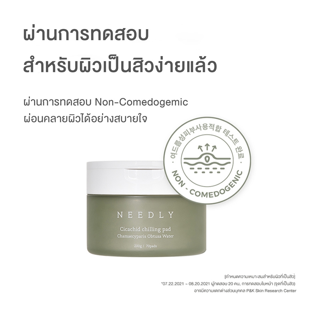 NEEDLY CICACHID CHILLING PAD 💚 ด้วยไฟตอนไซด์และสนไซเปรสที่ช่วยปลอบประโลมผิว ลดอาการระคายเคือง เติมความชุ่มชื้น สร้างสมดุลให้แก่ผิว จัดการปัญหาผิวได้ตรงจุดผ่อนคลายผิว จากความร้อนและมลภาวะให้ผิวชุ่มช่ำ เพียง 1 แผ่น ในทุก ๆ วัน 💚 ปริมาณสุทธิ 200 กรัม จำนวน 70 แผ่น 💚 วิธีใช้ : ใช้เพียงวันละ