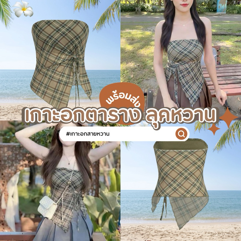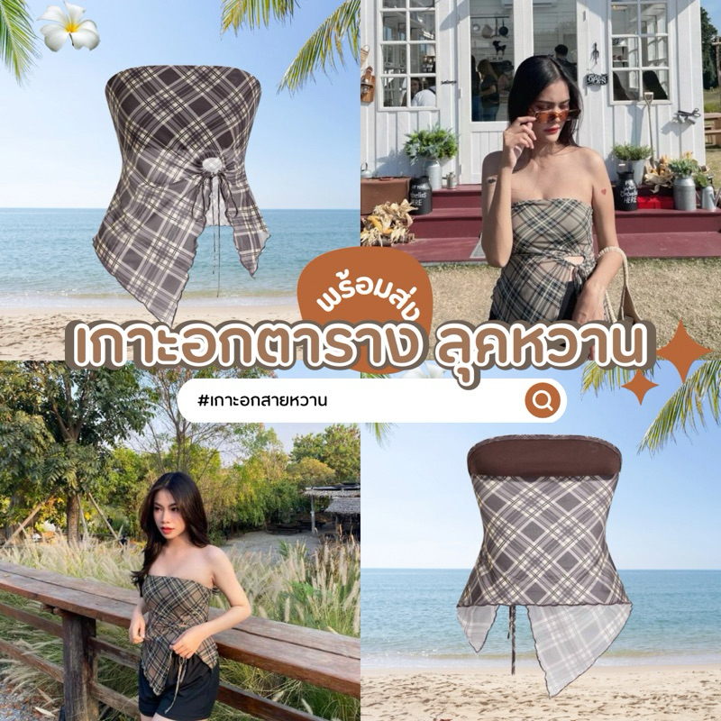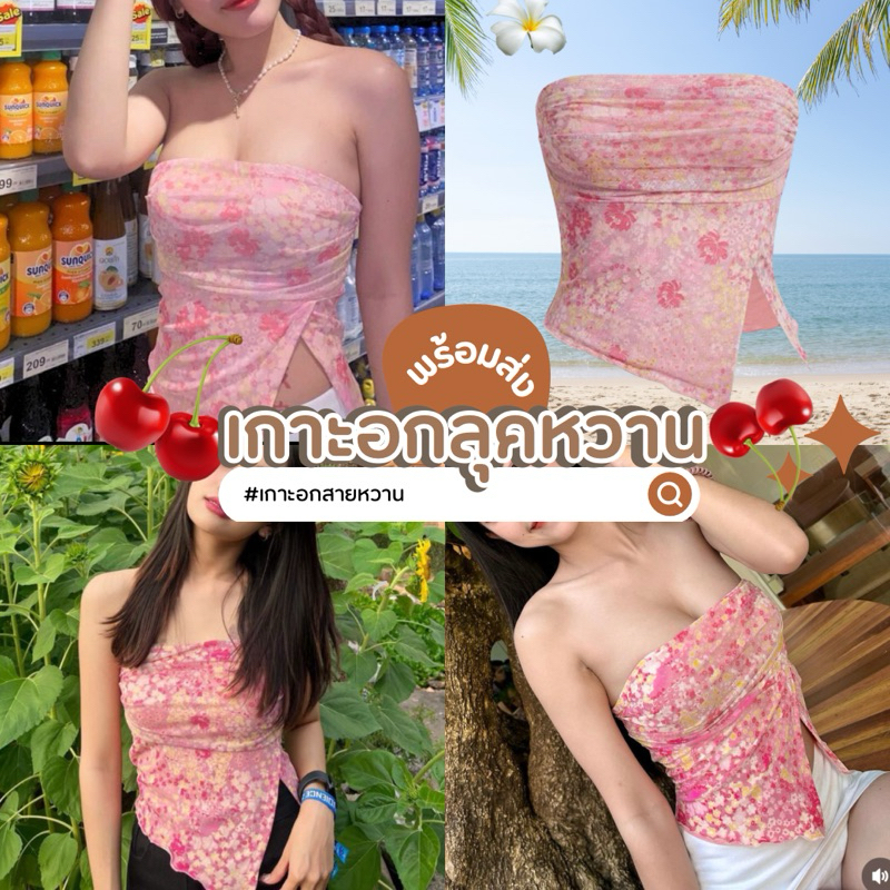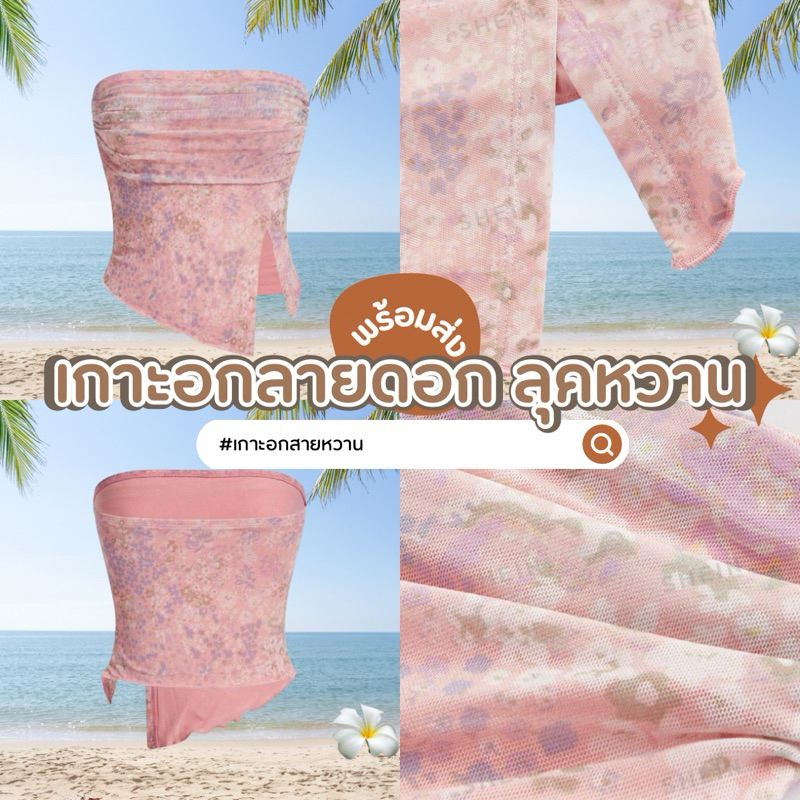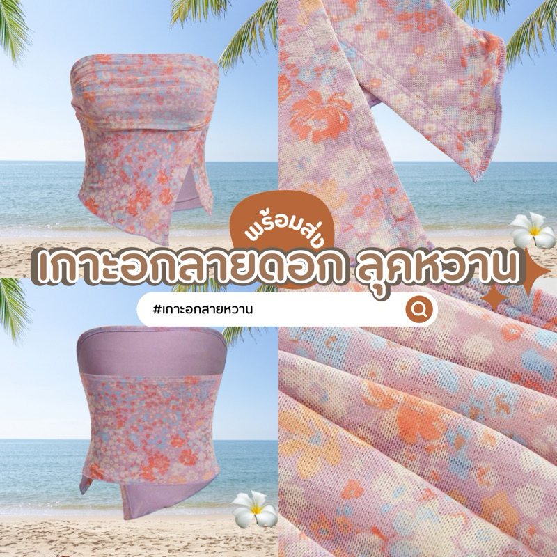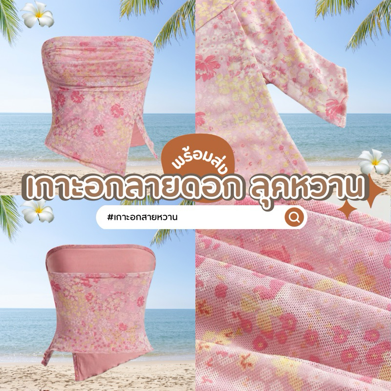 เกาะอกลายดอกไม้ เสื้อเกาะอก พิมพ์ลาย ดอกไม้ จับจีบ ตาข่าย ป้ายติด ไซส์ S / EU36