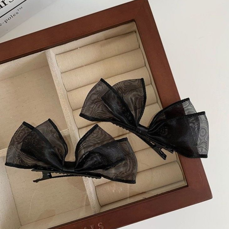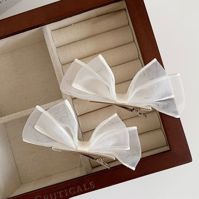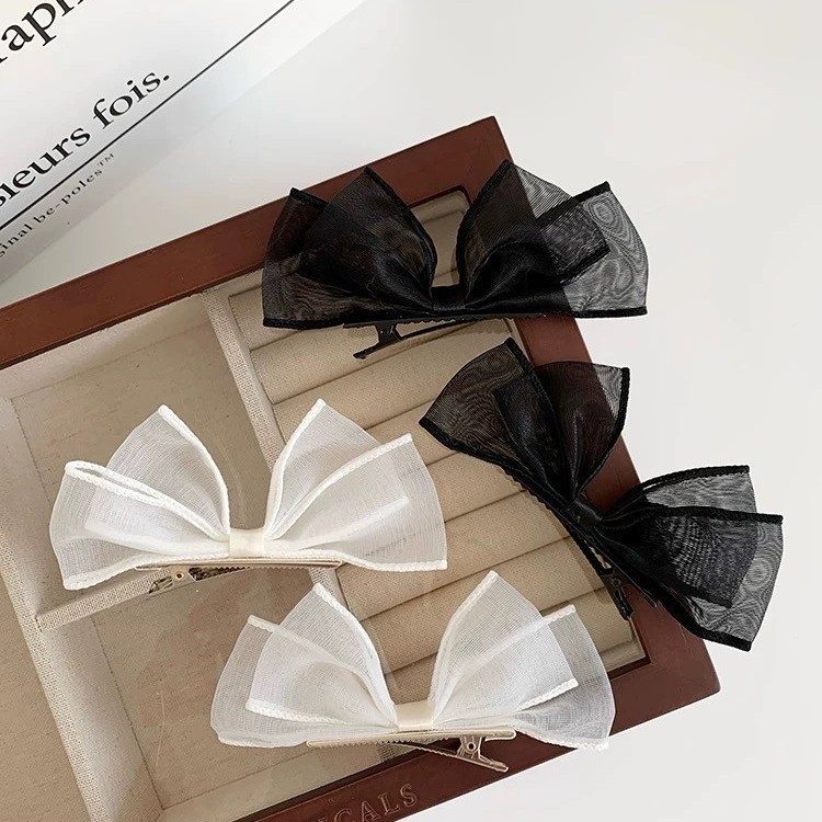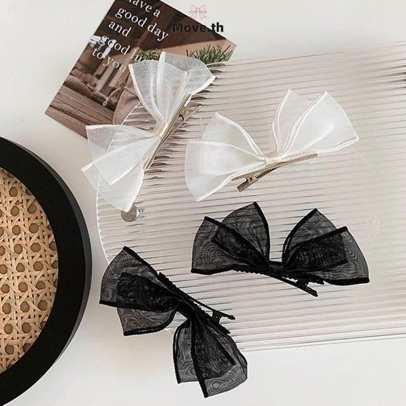 ในไทย-พร้อมส่ง✨กิ๊บหนีบผม ประดับโบว์ สีขาว/สีดำ น่ารักหวาน สไตล์เกาหลีเรียบง่าย คลิปด้านข้าง-Move