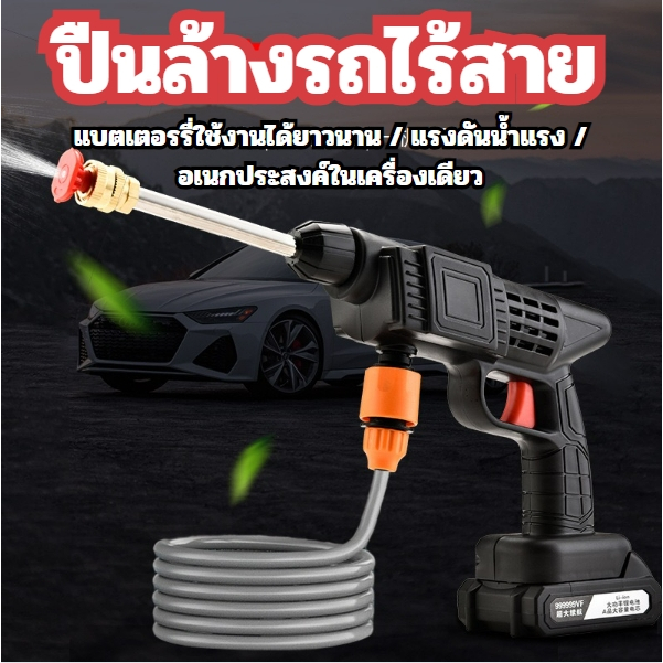 ปืนฉีดน้ำแรงดันสูงไร้สาย ปืนฉีดน้ำล้างรถ ทำความสะอาดได้อย่างมีประสิทธิภาพทุกพื้นที่ พร้อมแบตเตอรรี่และอุปกรณ์