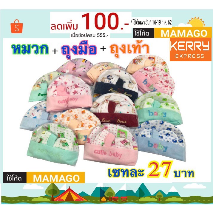 หมวก ถุงเท้า ถุงมือ เซ็ต รวม 3 ชิ้น ลายใหม่ และ ถุงเท้าหัวตุ๊กตา-การ์ตูน และถุงมือ cotton มีตัวเลือกสินค้า 3 แบบให้เลือกนะคะ **** โปรดอ่านก่อนสั่งซื้อ***** 1. หมวก ถุงเท้า ถุงมือ เซ็ต รวม 3 ชิ้น ใน เซตจะมี หมวก 1 ถุงมือ 1 คู่ ถุงเท้า 1 คู่ เลือกสีได้แต่เลือกลายไม่ได้**** 2. ถุงเท้าหัว
