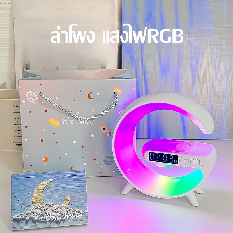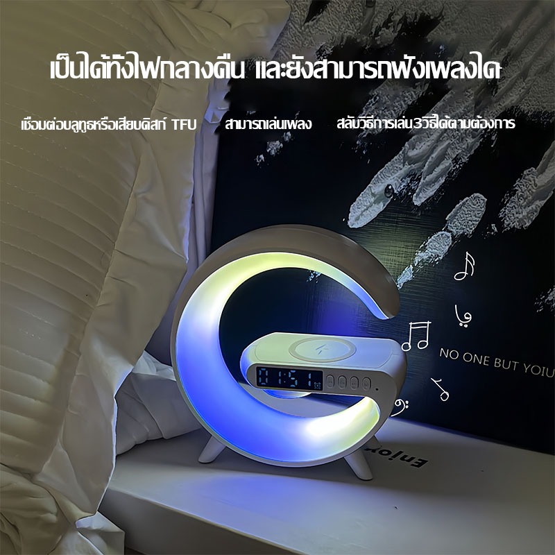 3 in 1ลำโพงบลูทูธ นาฬิกาปลุก ชาร์จไร้สาย สร้างบรรยากาศข้างเตียง ไฟLED 256แบบ จำลองแสงพระอาทิตย์