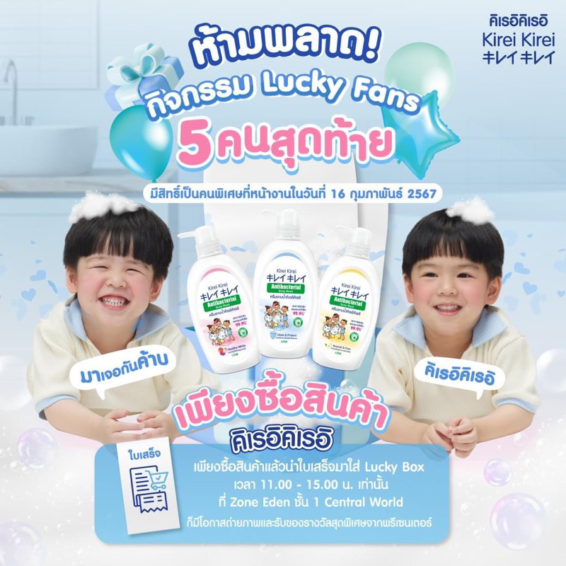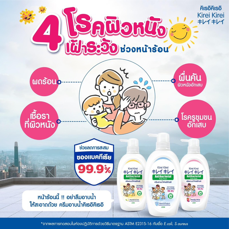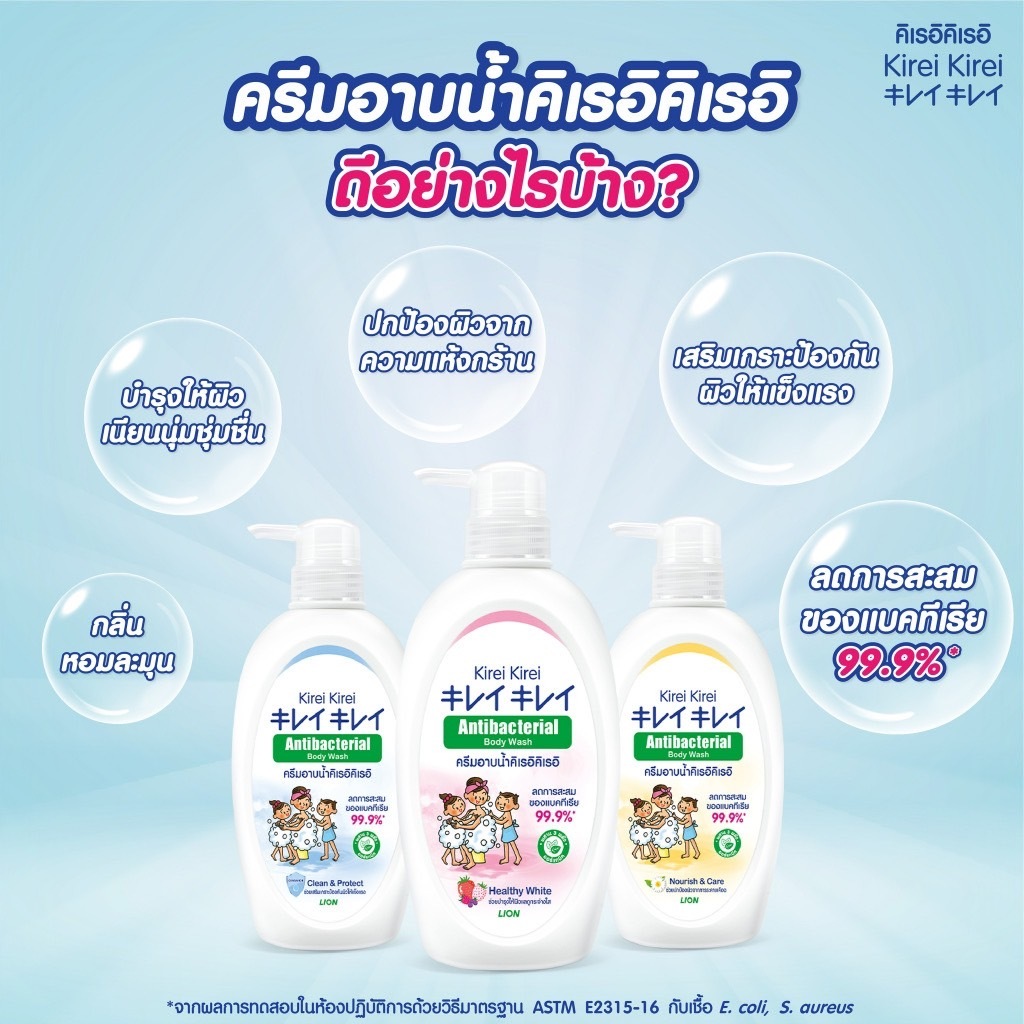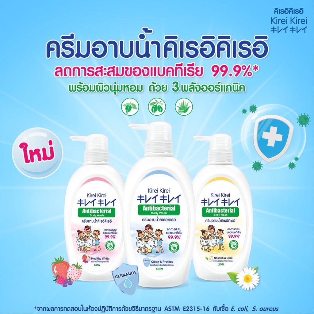 ... งกร้าน พร้อมบำรุงให้ผิวเนียนนุ่มชุ่มชื่น เพื่อผิวกายสุขภาพดี ปกป้องผิวของทุกคนในครอบครัวให้สะอาดมีอนามัย **คิเรอิ คิเรอิ สูตร เฮลตี้ ไวท์** มอบกลิ่นหอมละมุนจากผลไม้ พร้อมสารสกัดเบอร์รี่ ที่ช่วยให้ผิวยสวยบำรุงให้ผิวสุขภาพดี แลดูกระจ่างใสอย่างเป็นธรรมชาติ ช่วยลดการสะสมของแบคทีเรีย 99.9%* รวมถึงผสานกับ 3 พลังออร์แกนิค (ออร์แกนิค อโลเวล่า, ออร์แกนิค โจโจ้บา ออยล์ และ ออร์แกนิค อาร์แกน ออยล์) ช่วยปกป้องผิวจากความแห้งกร้าน พร้อมบำรุงให้ผิวเนียนนุ่มชุ่มชื่น ปกป้องผิวของทุกคนในครอบครัวให้สะอาดอย่างมีอนามัย **คิเรอิ คิเรอิ สูตร คลีน แอนด์ โพรเทค** มอบกลิ่นหอมสะอาด เสริมเกาะป้องกันผิวให้แข็งแรงสุขภาพดี ด้วยสารสกัดจากเซราไมด์ (Ceramide) พร้อมช่วยลดการสะสมของแบคทีเรีย 99.9%* รวมถึงผสาน 3 พลังออร์แกนิค (ออร์แกนิค อโลเวล่า, ออร์แกนิค โจโจ้บา ออยล์ และ ออร์แกนิค อาร์แกน ออยล์) ช่วยปกป้องผิวจากความแห้งกร้าน พร้อมบำรุงให้ผิวเนียนนุ่มชุ่มชื่น มอบความสะอาดให้กับทุกคนในครอบครัวมีอนามัย