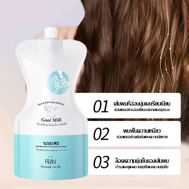 RSAN นมแพะ ครีมนวดผม 500ml Goat Milk hair conditioner เคราตินสด ทําให้ผมนุ่มสลวยและเงางาม ลดการชี้ฟู(1356)