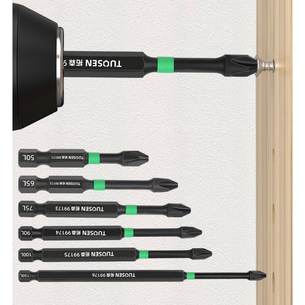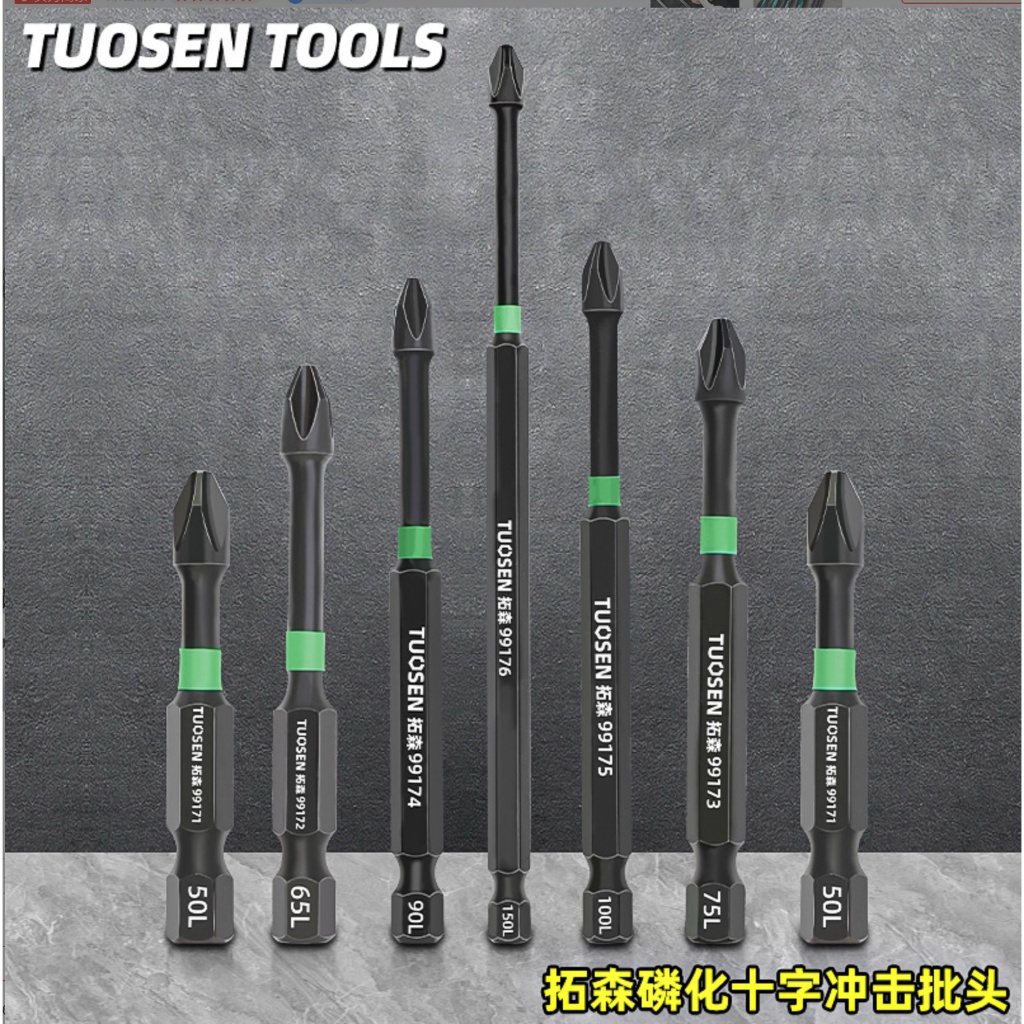ดอกไขควง แฉก หัวแม่เหล็ก หัวไขควง TUOSEN คุณภาพสูง สว่าน คุณสมบัติ: 1.เหมาะสำหรับแรงกระแทกและการทำงานของสกรูที่มีความแข็งแรงสูงเหมาะสำหรับไขควง/ไขควงไฟฟ้า/สว่านมือโดยเฉพาะอย่างยิ่งสำหรับไขควงกระแทก 2.ทนแรงกระแทกความแข็งของบิตสูงเท่าที่62HRC ความยาวเพิ่มขึ้นเพื่อดูดซับแรงบิดเพื่อลดความเสียหา