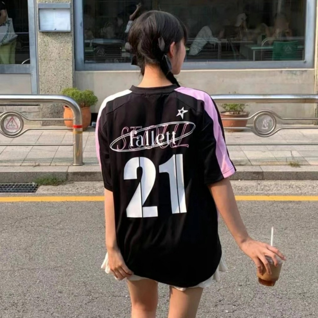 เสื้อยืดผู้ชายและผู้หญิงสไตล์กีฬา เสื้อยืดคอกลมหลวม - เสื้อฟุตบอลหมายเลข 21 เสื้อ Oversize Unisex Hottrend 2024