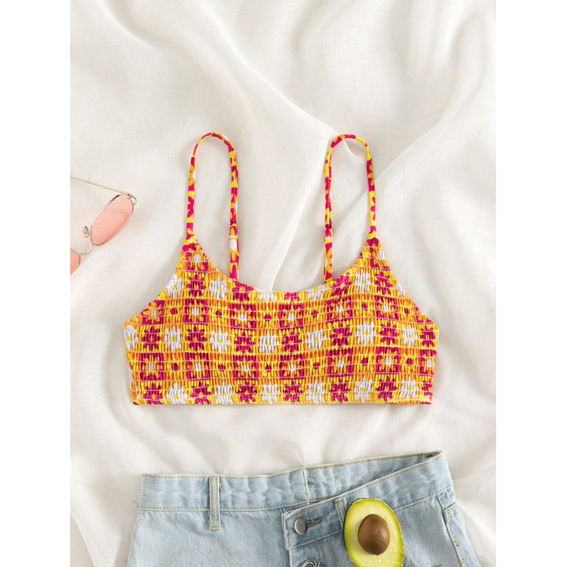 ชุดว่ายน้ำ Top bra บราบน ผ้ายับ สายปรับระดับได้มีฟองน้ำ ซับใน แบบสวม