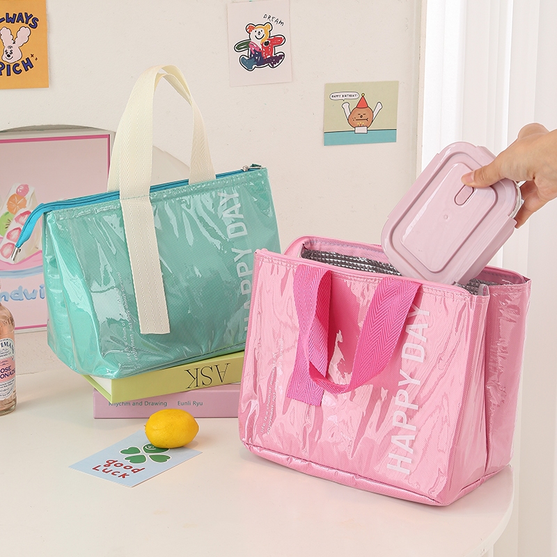 กระเป๋าเก็บอุณหภูมิ อาหารกลางวัน กระเป๋าใส่กล่องข้าว เก็บอาหาร เบนโตะ ความร้อนเย็น กันน้ำPUถุงใส่อาหารมีหูหิ้ว