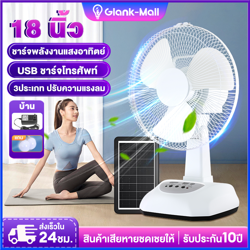 พัดลมโซล่าเซลล์ โซล่าเซลล์ Solar fan พัดลม 8-18 นิ้ว พัดลมตั้งโต๊ะ พัดลมอุตสาหกรรม แบตเตอรี่ในตัว ใช้ไฟฟ้าได้