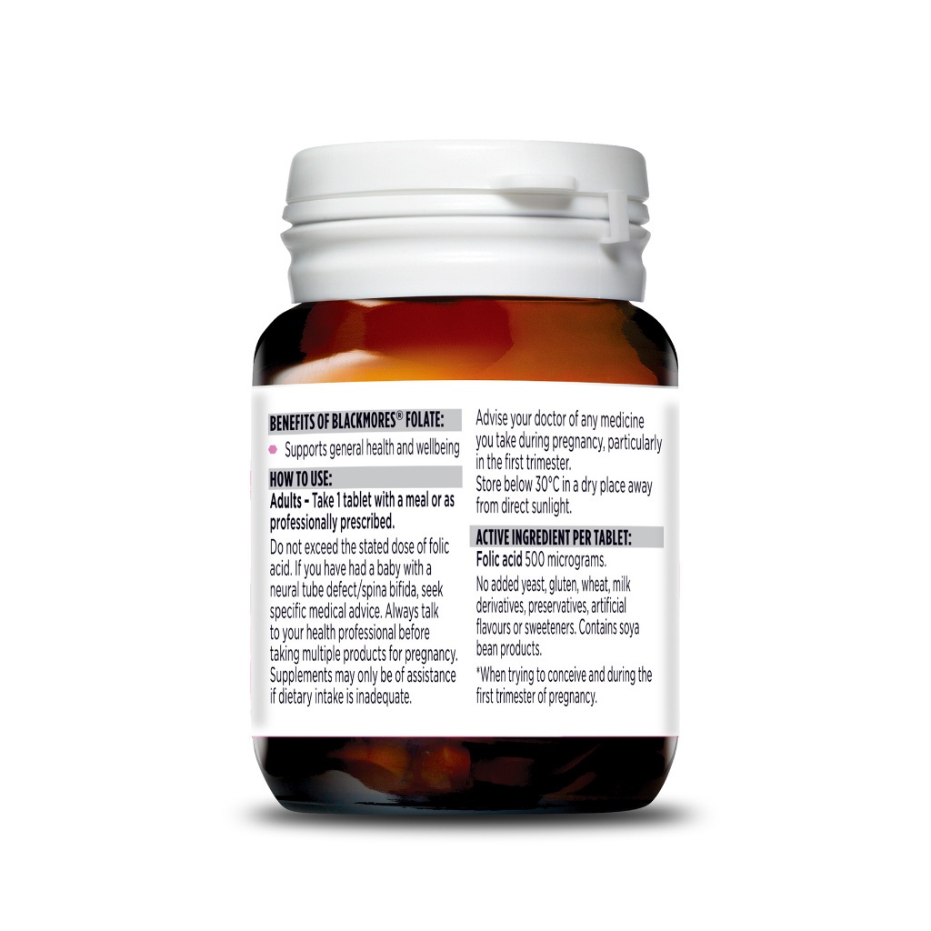 Blackmores Folate 500 mcg 90 cap โฟลิค แอซิด โฟลิค แอซิด เป็นวิตามินที่จัดอยู่ในกลุ่มวิตามิน บี พบมากในตับสัตว์ ผักขมฝรั่ง น้ำส้มคั้น และมีความจำเป็นต่อการสังเคราะห์ดีเอ็นเอ และอาร์เอ็นเอ รหัสพันธุกรรมในขบวนการแบ่งตัวของเซลล์ มีรายงานว่าการรับประทานอาหารที่อุดมด้วยโฟลิค แอซิด ในระหว่างการตั้งครรภ