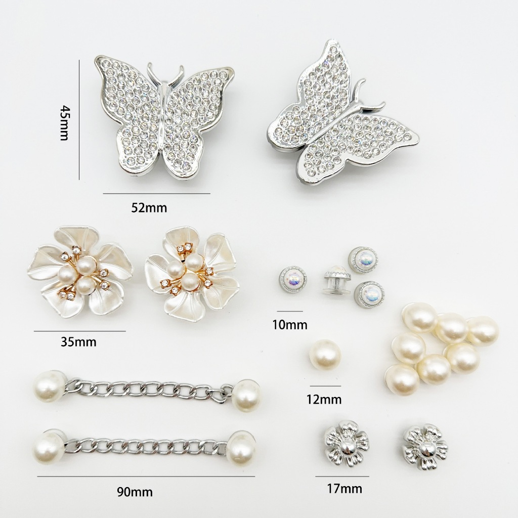 กระดุมไข่มุก ดอกไม้ เพชร ผีเสื้อ DIY อุปกรณ์เสริม สําหรับรองเท้า 20 ชิ้น