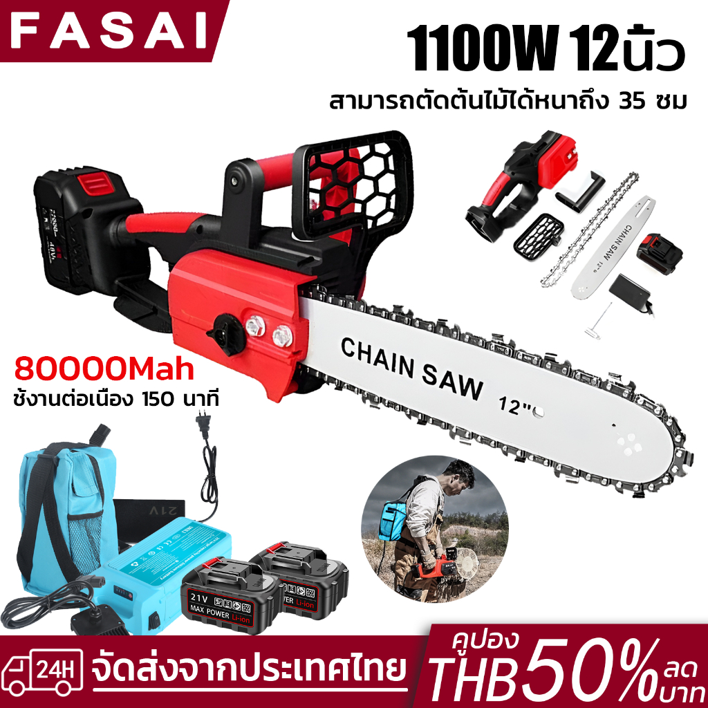 เลื่อยยนต์ เลื่อยไฟฟ้าไร้สาย 12นิ้ว 16800W เลื่อยตัดไม้ เลื่อยยนต์ตัดไม้ เลื่อยโซ่ไฟฟ้า เลื่อยโซ่ไร้สาย chainsaw