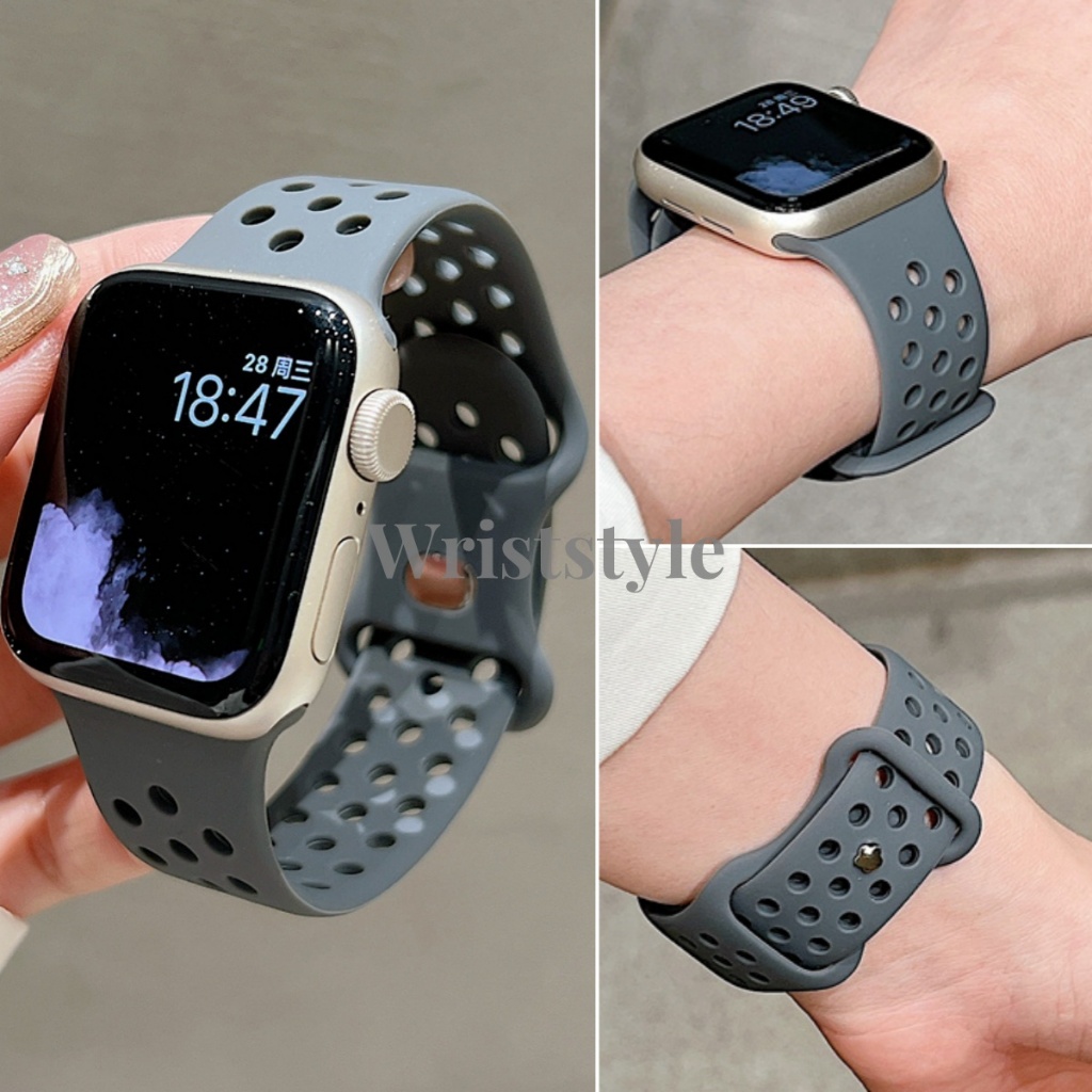 สายนาฬิกาข้อมือ ยางซิลิโคนนิ่ม ระบายอากาศ แบบเปลี่ยน สําหรับ iWatch S9 8 7 6 5 4 3 2 1 SE2 ULTRA 49 มม. 45 44 42 41 40 38