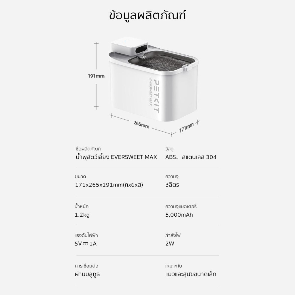 PETKIT Eversweet Max Wireless 3L (Global Version) ประกันศูนย์ไทย 1ปี น้ำพุสัตว์เลี้ยงอัจฉริยะแบบไร้สาย 3ลิตร