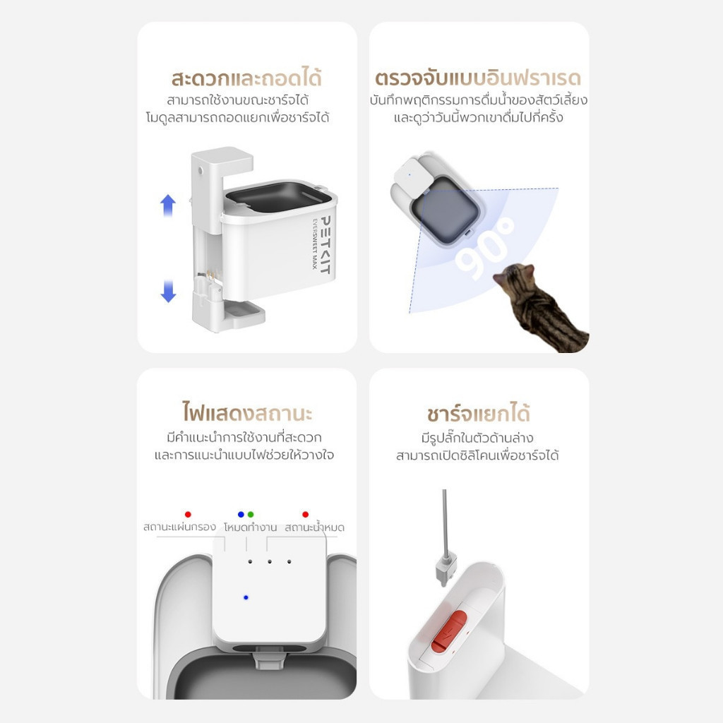 PETKIT Eversweet Max Wireless 3L น้ำพุสัตว์เลี้ยงอัจฉริยะแบบไร้สาย 3ลิตร 📍ชาร์จ 1 ครั้ง ใช้งานยาวนานได้ถึง 83 วัน กับความจุแบตที่อึด 5,000 mAh 📍ใหญ่สุดเท่าที่เคยมีมากับความจุ 3 ลิตร เหมาะกับแมวหลายตัวและสุนัข 📍รับรู้ได้ทุกการดื่มผ่าน App Petkit ด้วยเซ็นเซอร์ตรวจจับที่แม่นยำ 📍นวัตกรรมการกรองใ