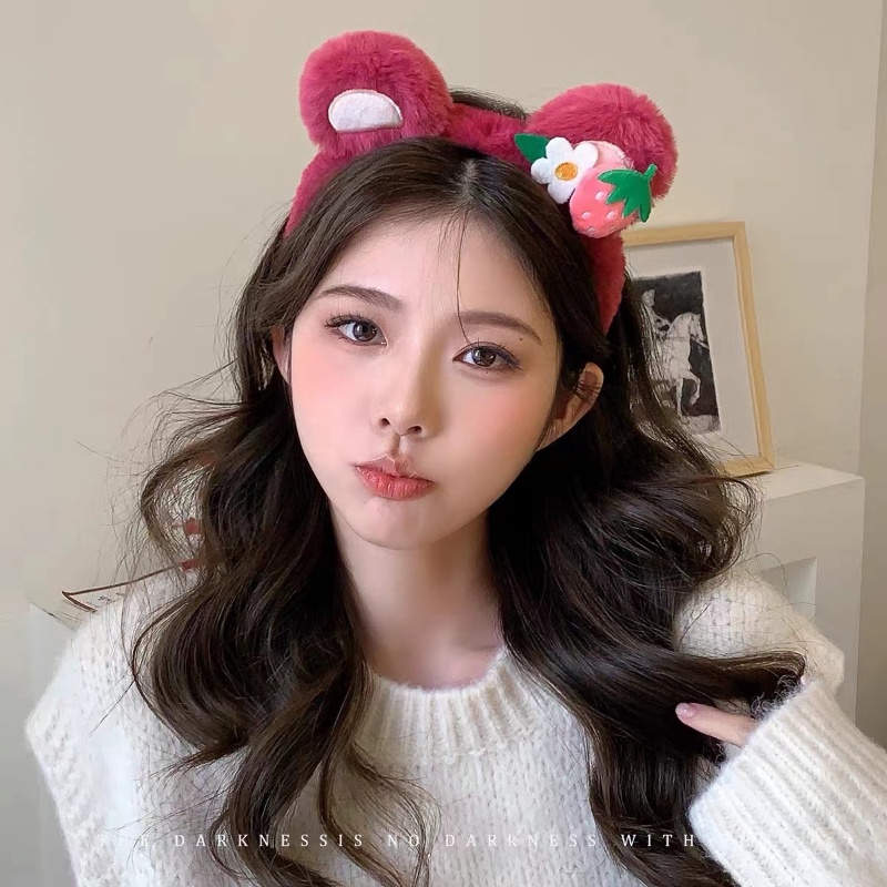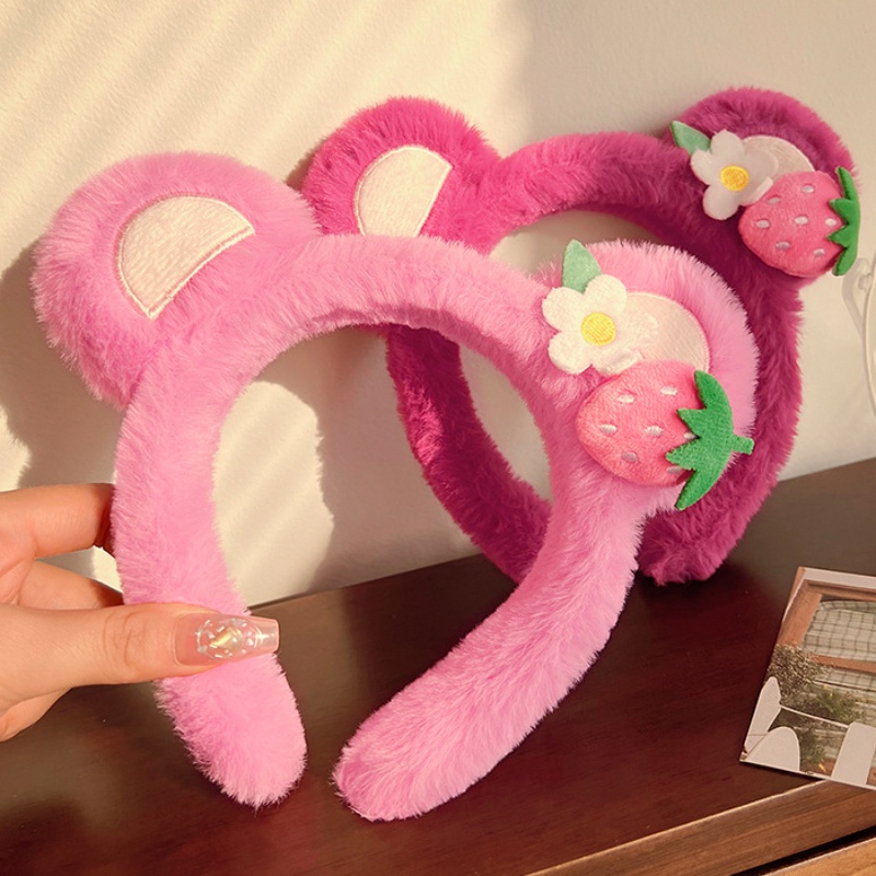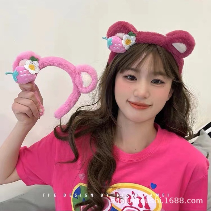 ที่คาดผม รูปตุ๊กตาหมี สตรอเบอร์รี่ แฟชั่นสําหรับผู้หญิง