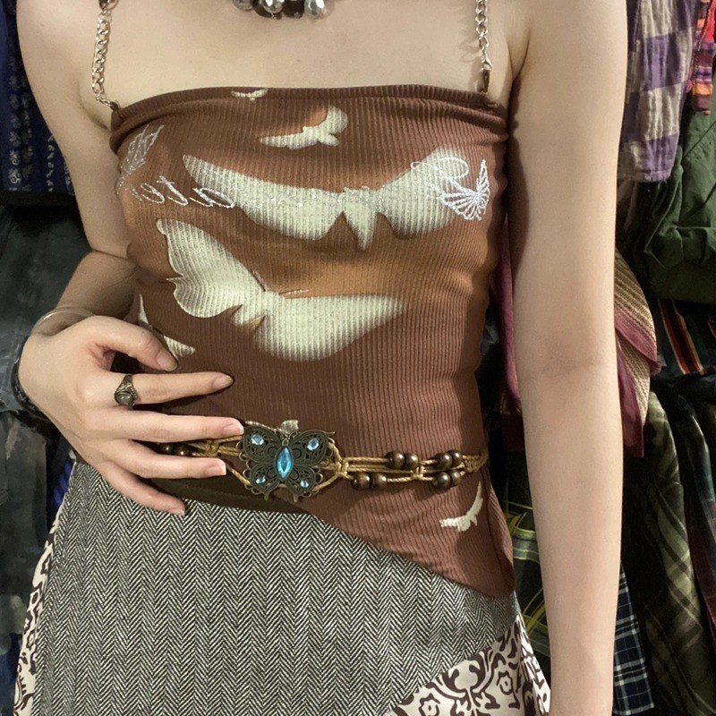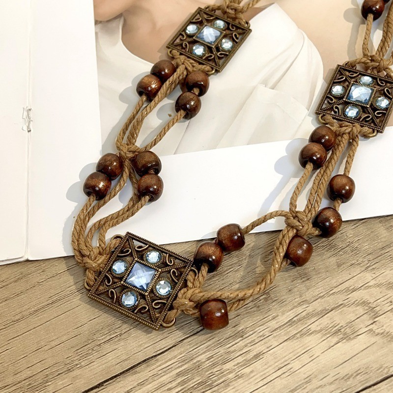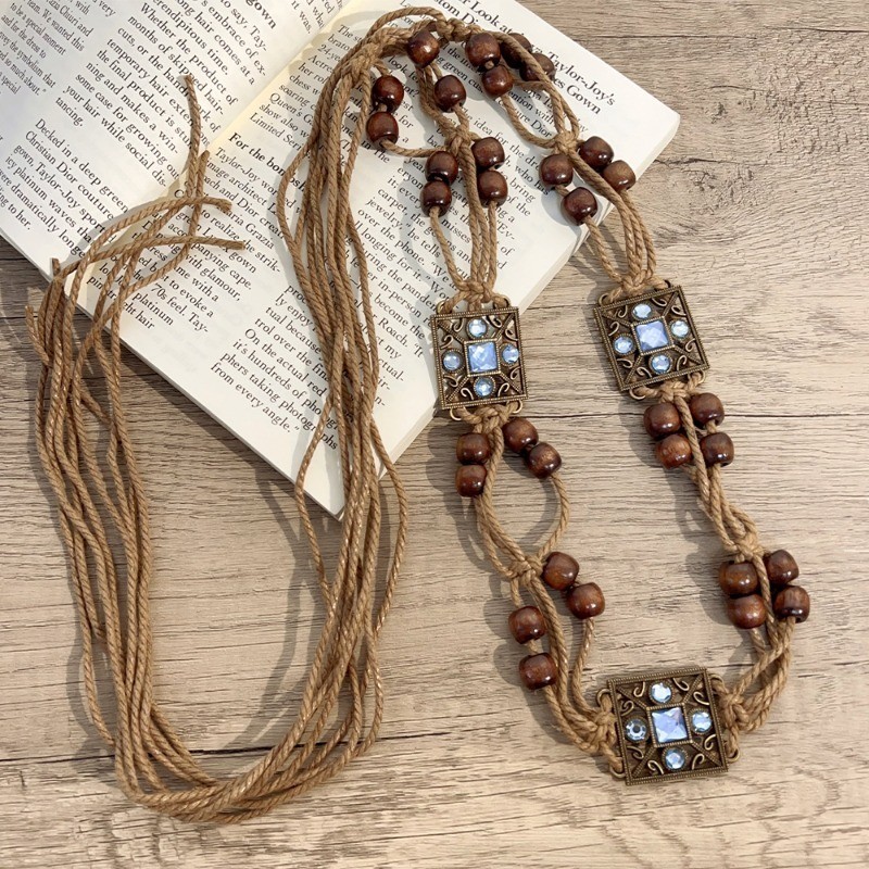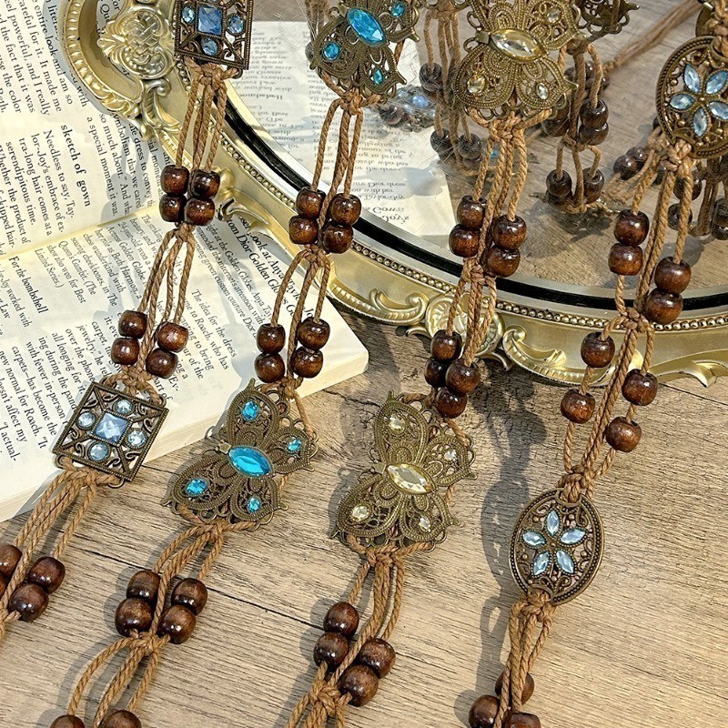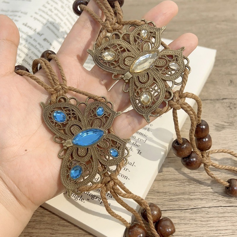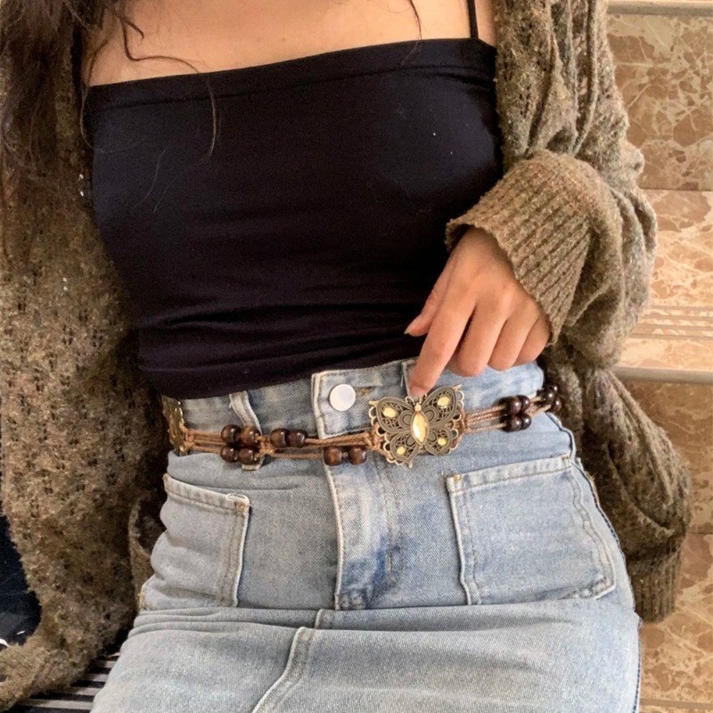 วินเทจสไตล์ชาติพันธุ์เข็มขัดทอมือ-ลูกปัดไม้ผีเสื้อน้ําเพชรเอวตกแต่งโซ่-วันหยุดสไตล์เชือกเอว-โซ่เอวทอสไตล์โบฮีเมียน-ชุดเอว