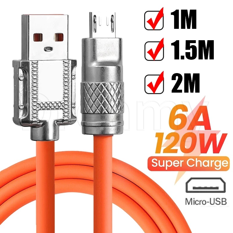สายชาร์จ Micro USB 120W 6A 1 เมตร 1.5 เมตร 2 เมตร คุณภาพสูง ทนทาน สีส้ม สําหรับโทรศัพท์มือถือ Android