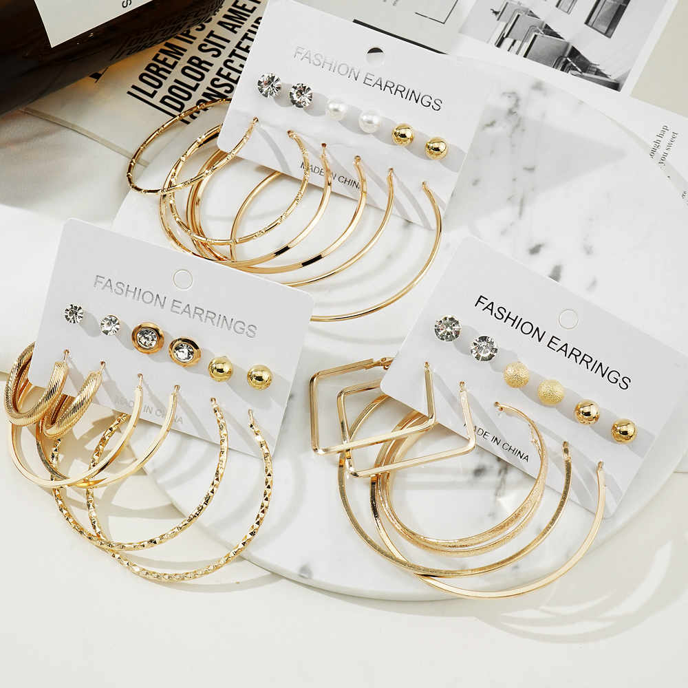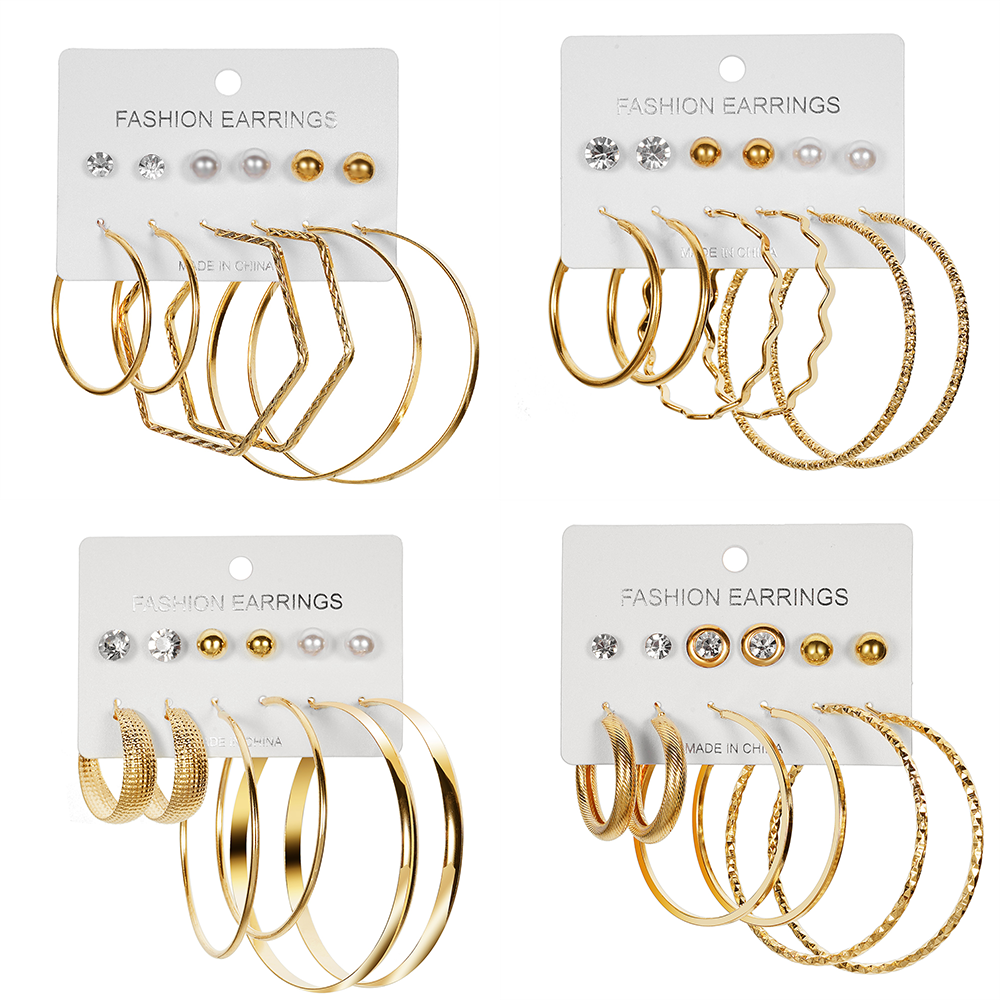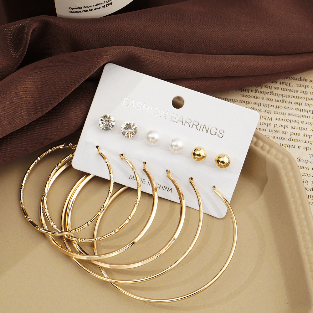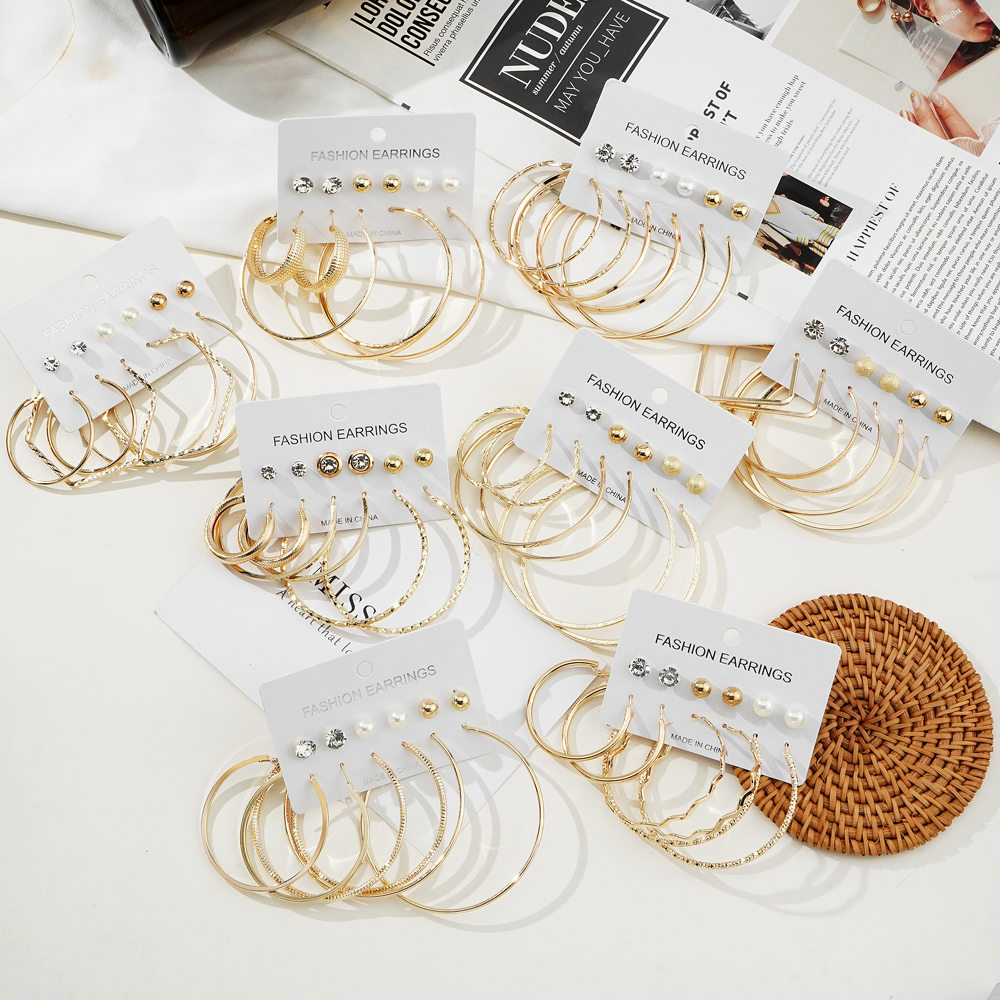 ชุดเครื่องประดับ ต่างหู รูปตัว C ขนาดใหญ่ เข้ากับทุกการแต่งกาย สไตล์ยุโรป และอเมริกัน 6 คู่