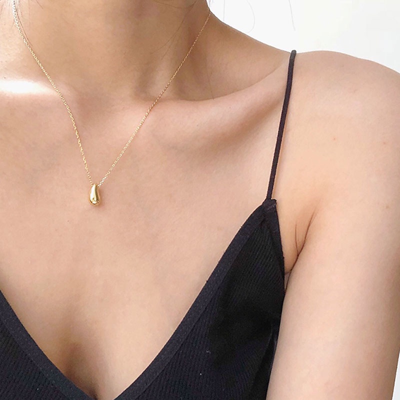 สร้อยคอโซ่ จี้รูปหยดน้ํา สีทอง เรียบง่าย สไตล์ฝรั่งเศส เครื่องประดับ สําหรับผู้หญิง 2024