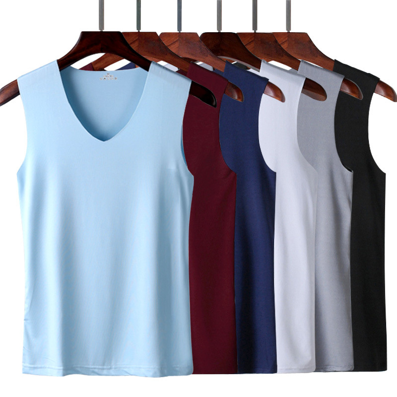 เสื้อกั๊กผู้ชายผ้าไหมน้ําแข็งไม่มีรอยต่อผู้ชายฤดูร้อนผอมกีฬาอุปสรรค์แขนกุดชุดชั้นใน จุดต่ําสุด เสื้อ สูงสุด