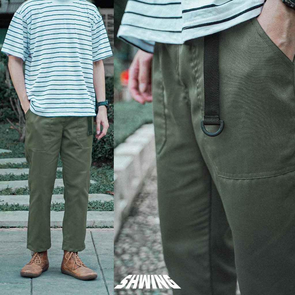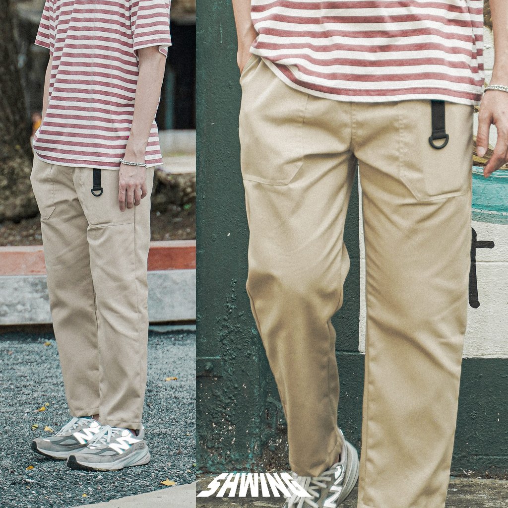 SHWING กางเกงขายาวเข็มขัด เอวยืด ผ้าเวสปอยท์ ทรงหลวม สไตล์ญี่ปุ่น SHWING BELTED PANTS