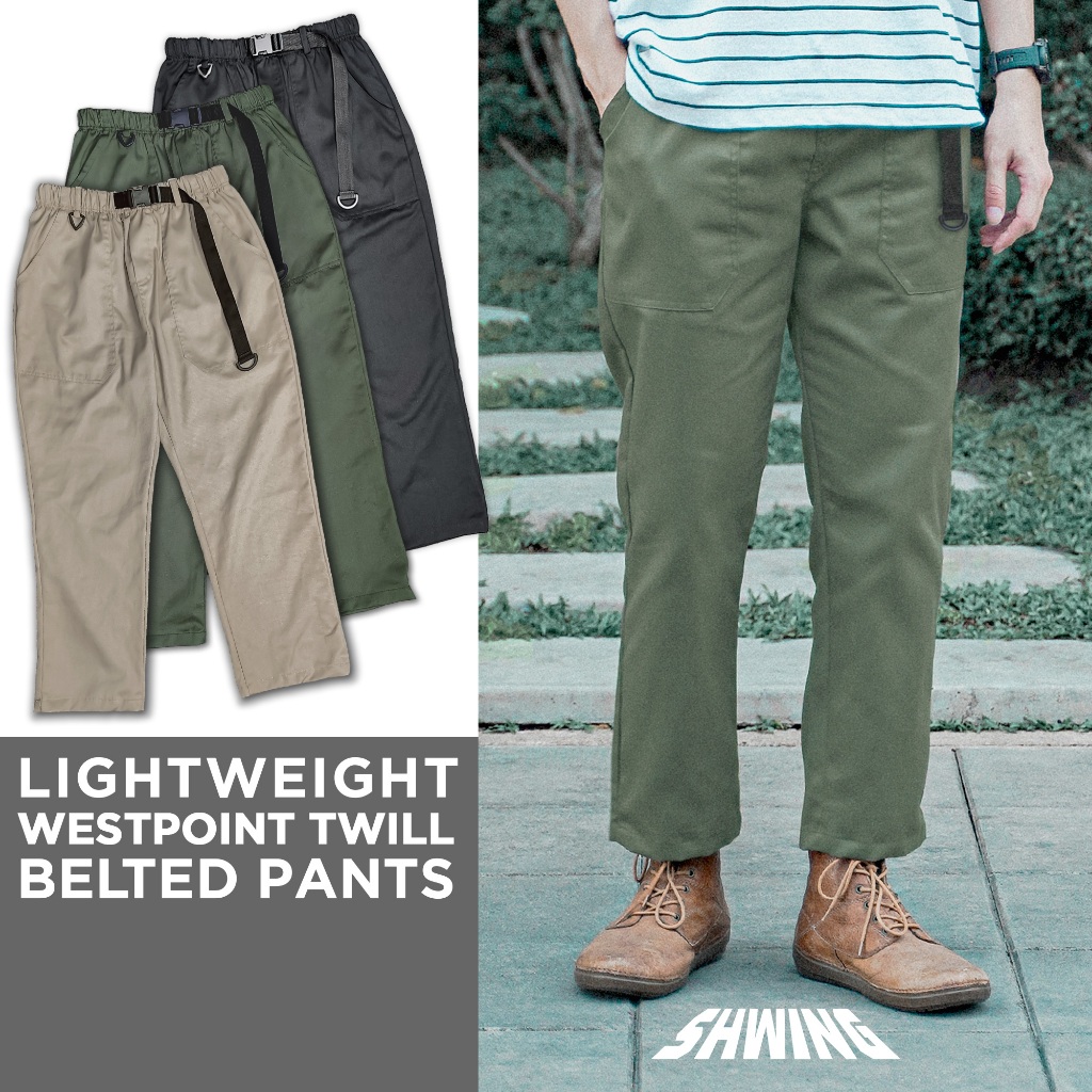 LIGHTWEIGHT WESTPOINT TWILL BELTED SHORT กางเกงขายาว เอวยืด ผ้าเวสปอยท์รุ่นน้ำหนักเบาพิเศษ แต่ยังคงความทนทาน คล่องตัว ยับยาก แค่สะบัดก็พร้อมใส่ - เอวยางยืด ใส่สบาย ขยายได้เยอะ - มีเข็มขัดในตัว สามารถปรับความยาวให้กระชับกับเอวผู้ใส่ - ขนาดขา และสะโพกกว้าง ลุก นั่ง เดิน ไม่ติด ไม่รั้ง