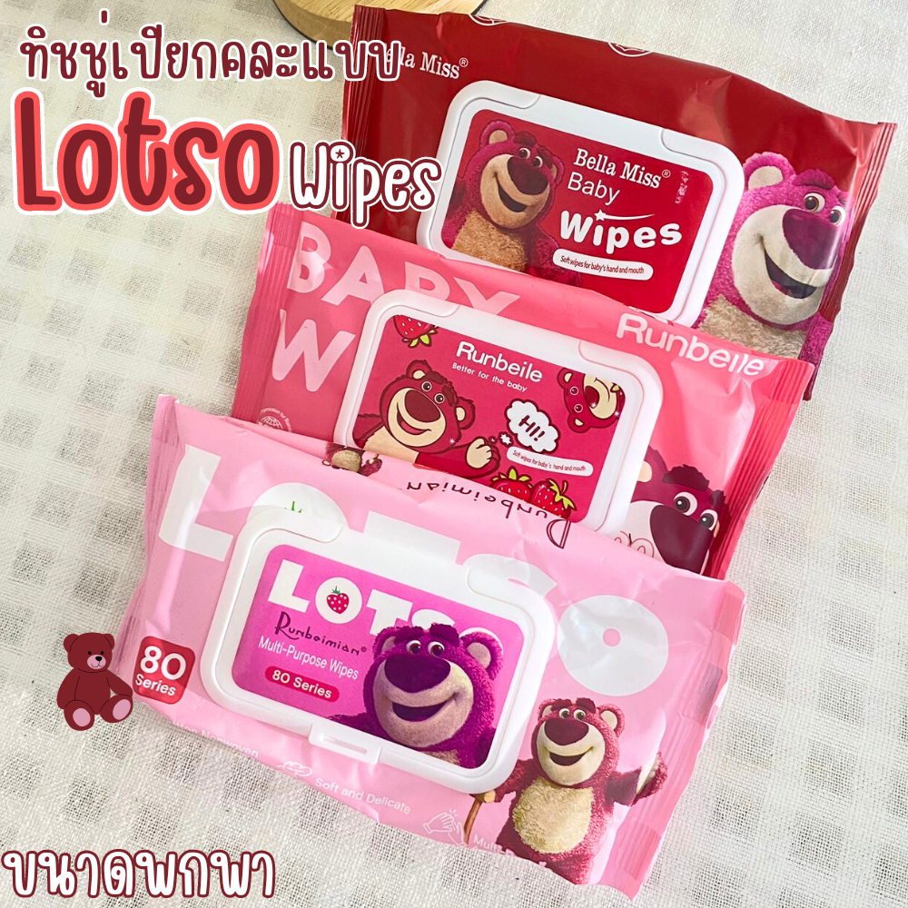 Lotso Wipes ทิชชู่เปียกคละลาย ลายหมีลอตโซ่ เนื้อผ้าเหนียวนุ่ม ยืดหยุ่น อ่อนโยน ปราศจากการแต่งกลิ่น ไม่ระคายเคืองต่อผิว