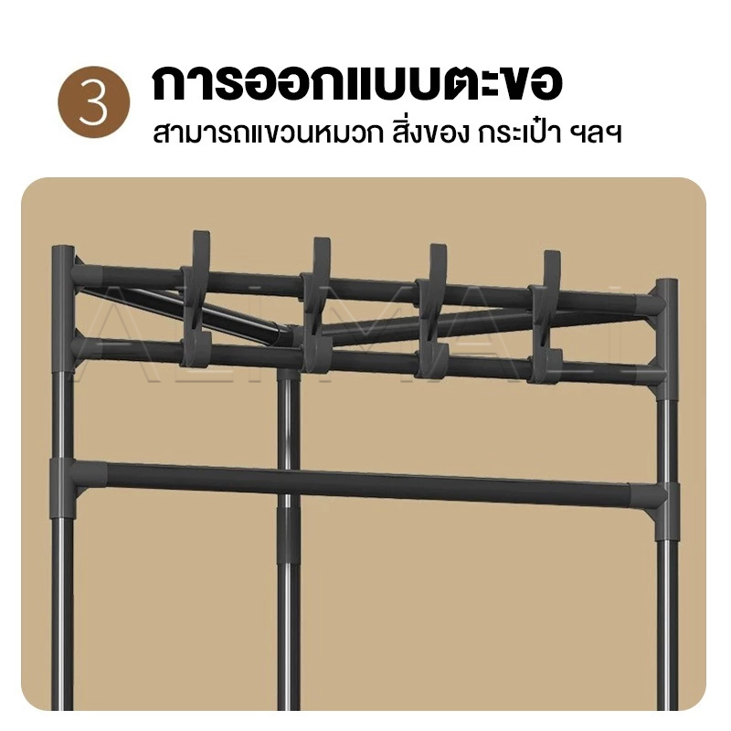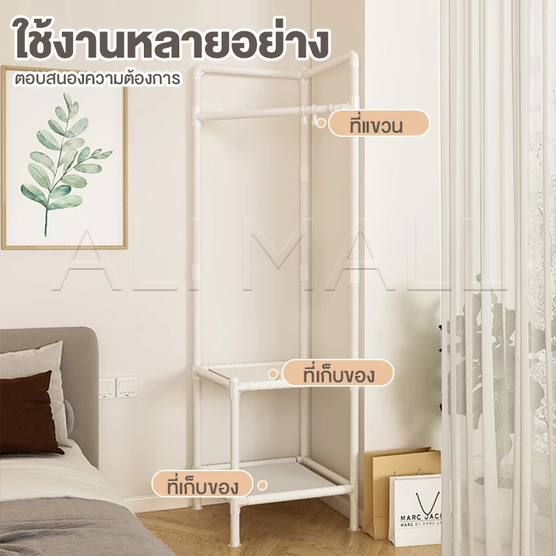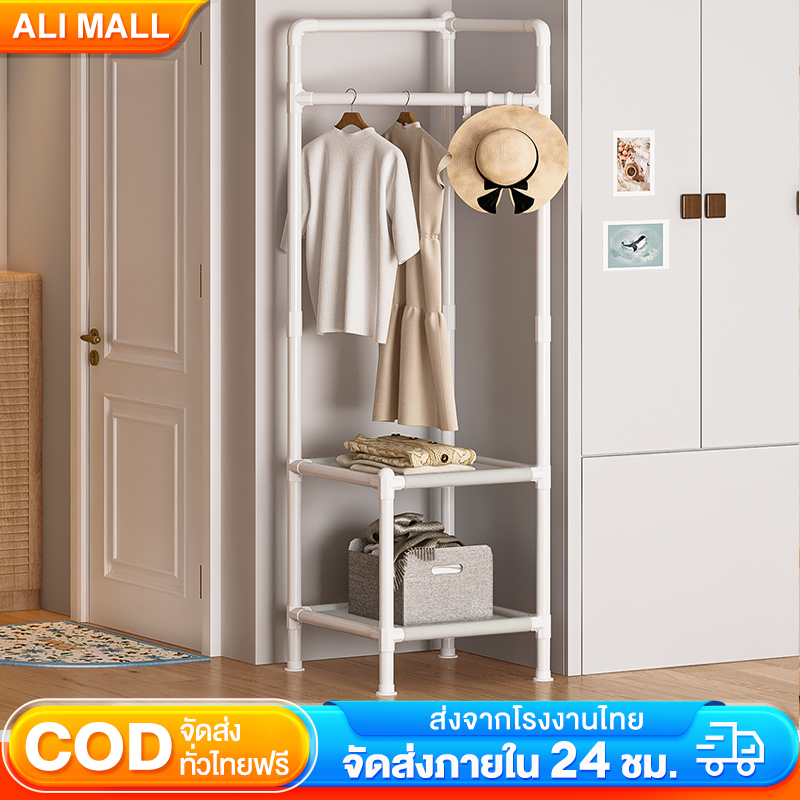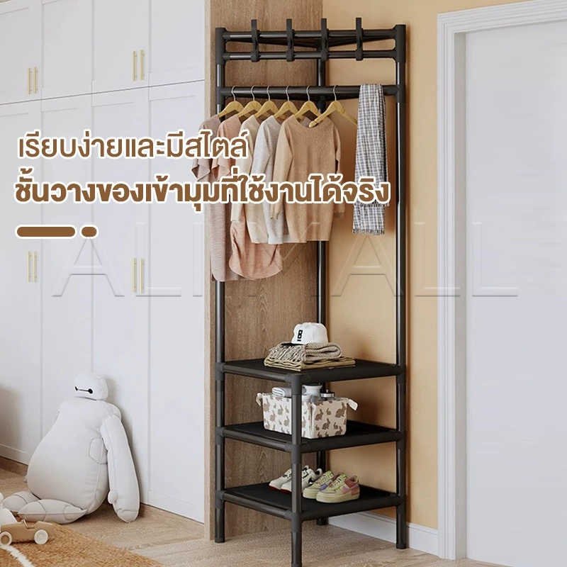 2/3ชั้น ราวแขวนเสื้อผ้าเข้ามุม ที่แขวนเสื้อผ้า มีตะขอ โครงเหล็ก คุณภาพสูง รับน้ำหนักได้ 20กก. ชั้นวางของ ในห้องนอน