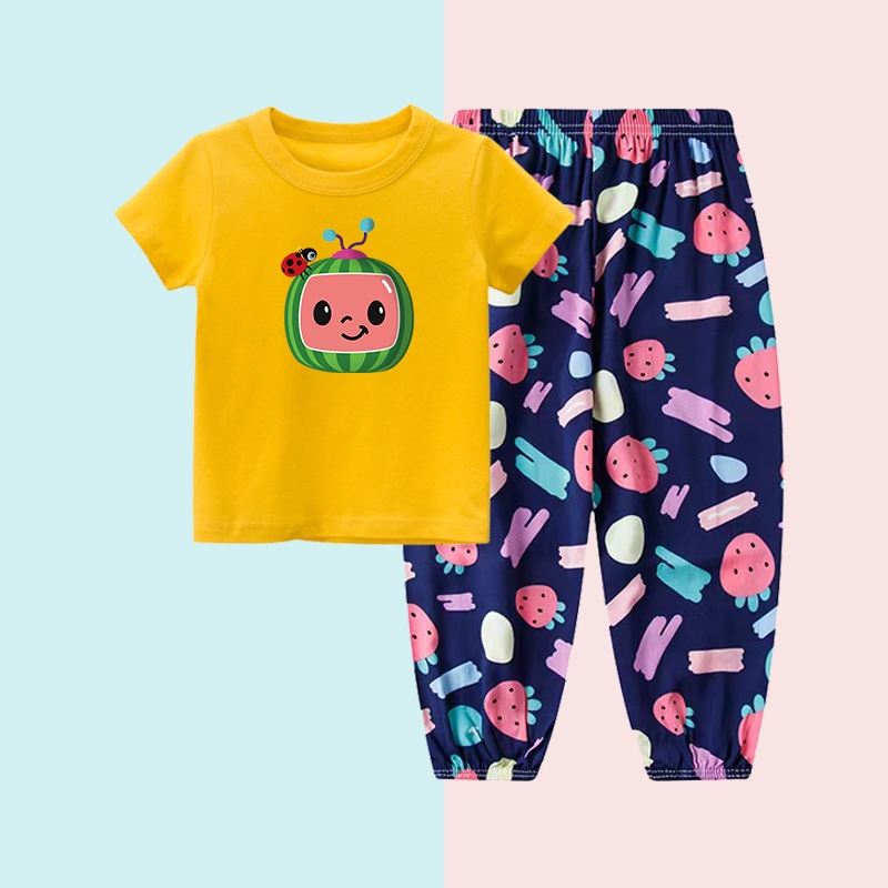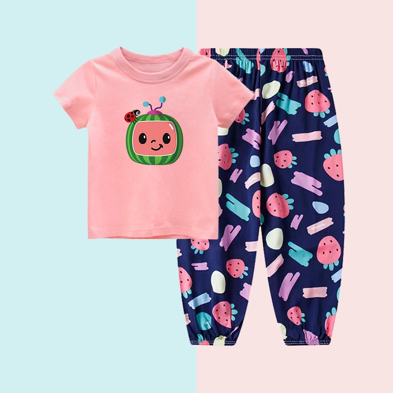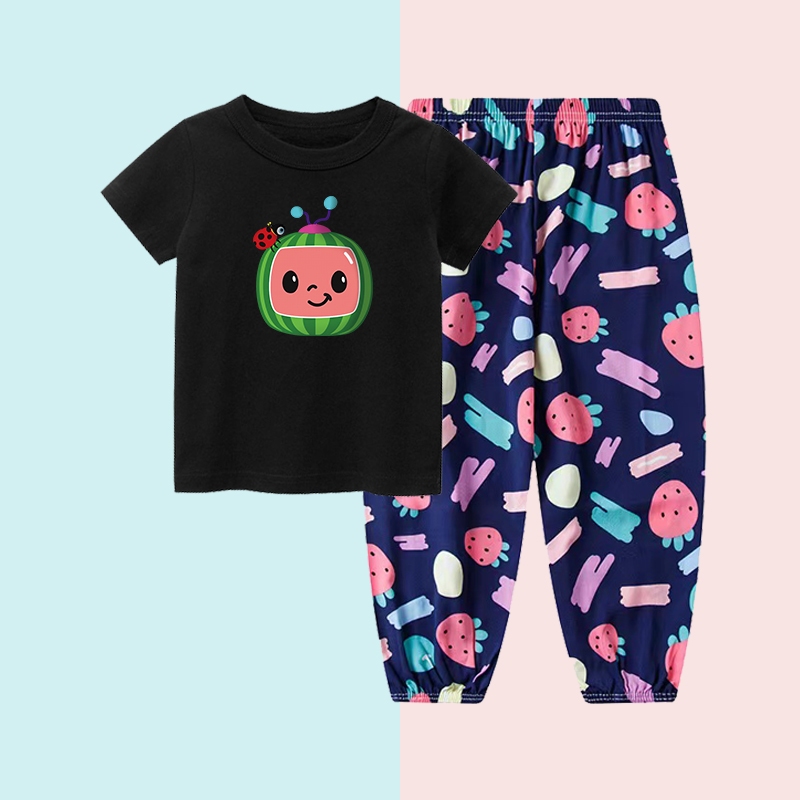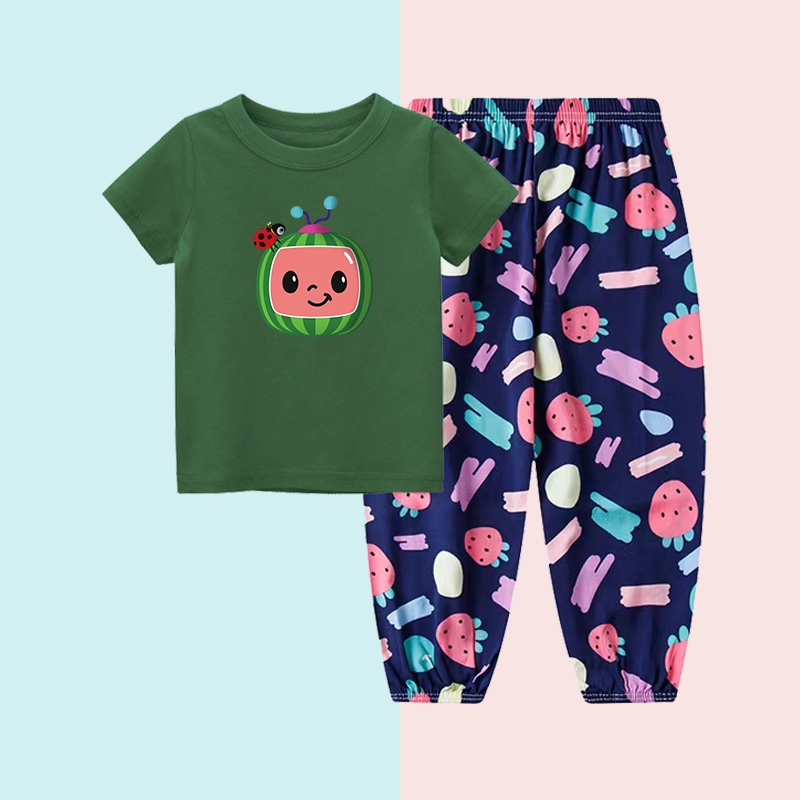 ชุดเด็กแฟชั่นสำหรับเด็ก (เสื้อยืด + กางเกง) เหมาะสำหรับแตงโม 1-8 ปี