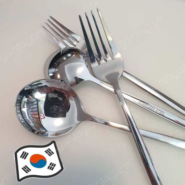 [พร้อมส่ง🔥🔥] ช้อนเกาหลี ส้อมเกาหลี ชุดช้อนส้อม ขนาด21cm แสตนเลสแท้ ทรงเกาหลีแท้ (คุณภาพดีมีน้ำหนัก!) 🚀