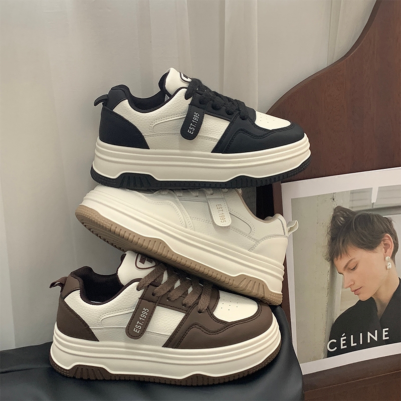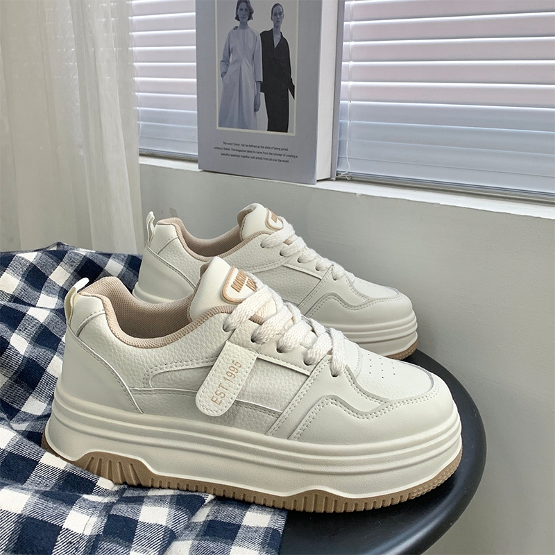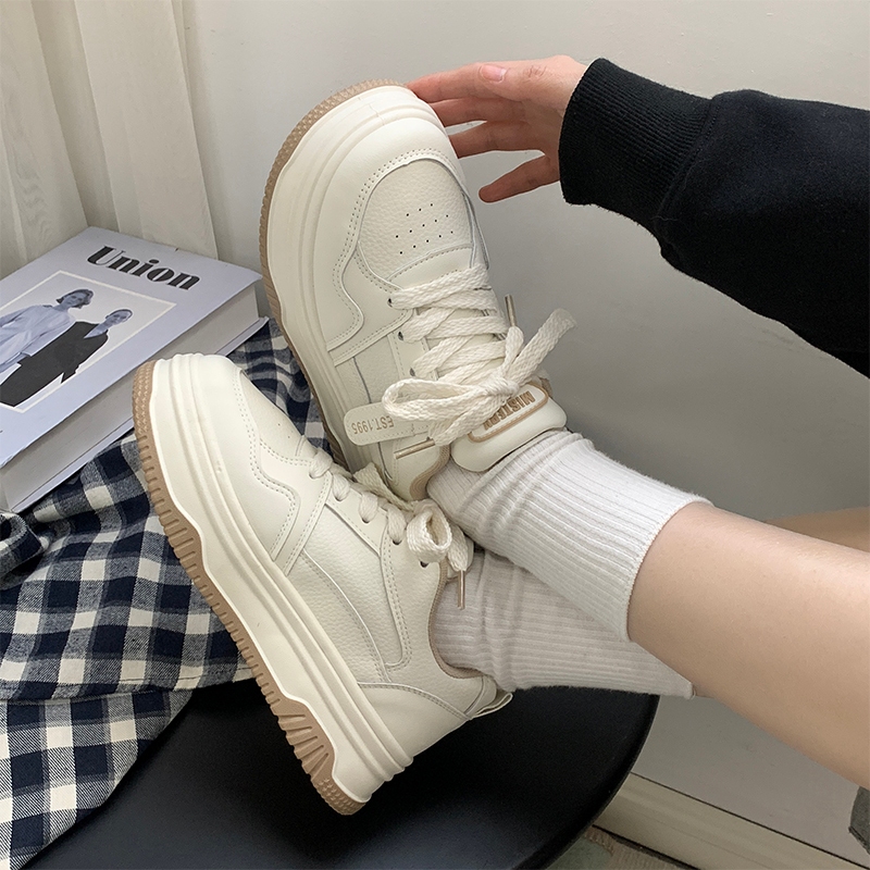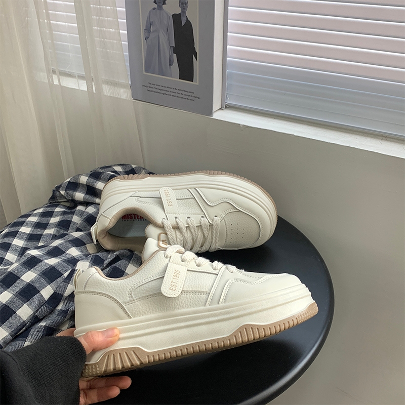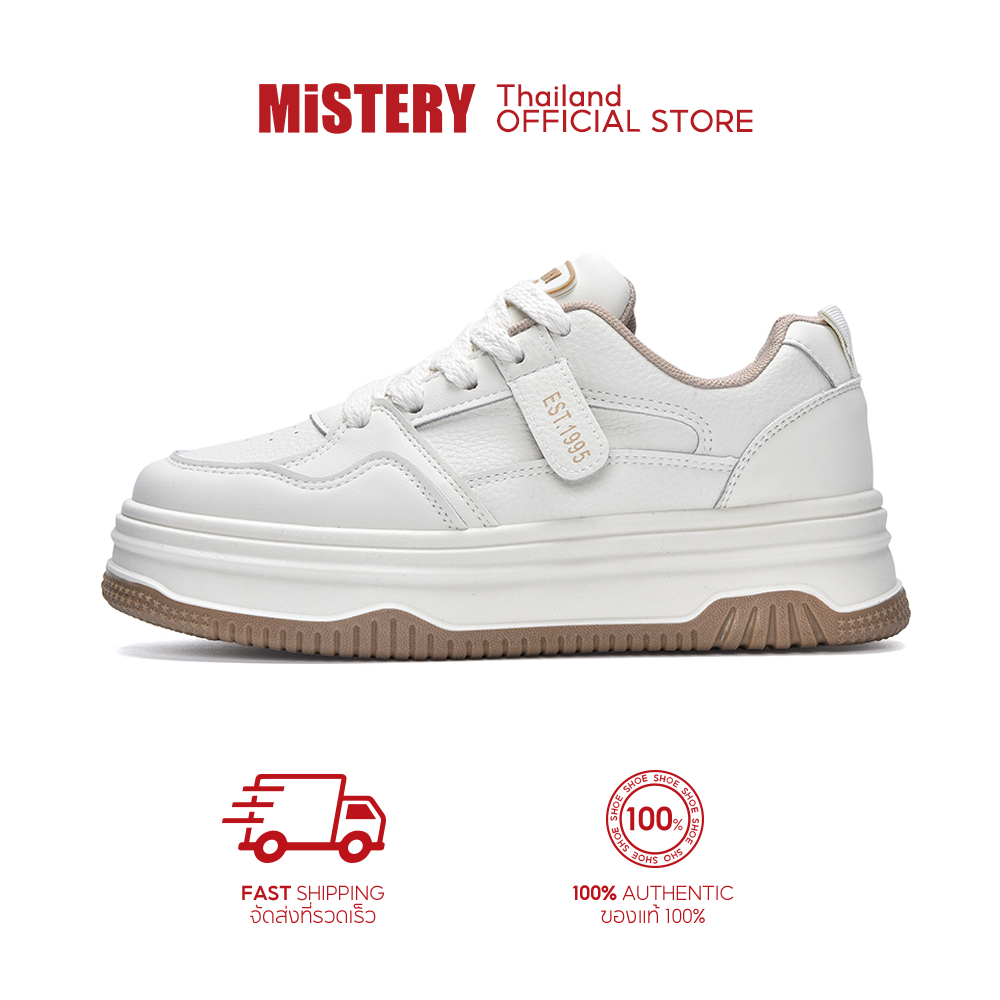 Mistery หนัง PU พื้นรองเท้าหนา 4.5cm เพิ่มความสูง ด้านบนต่ำ รองเท้าผ้าใบแบน (MIS-1069)