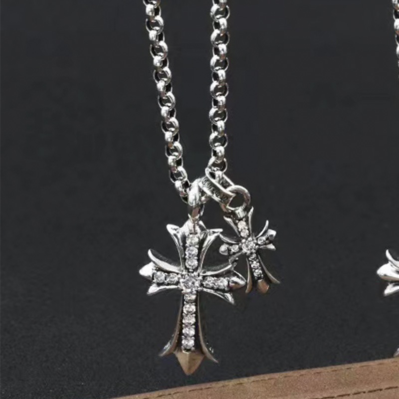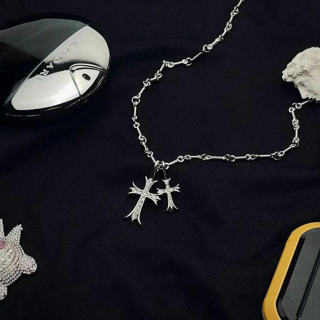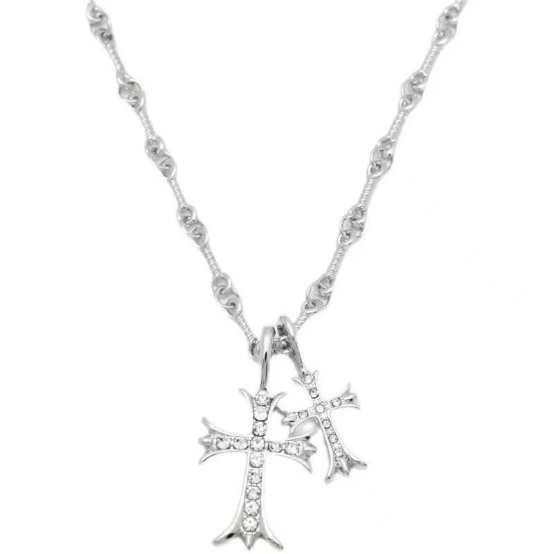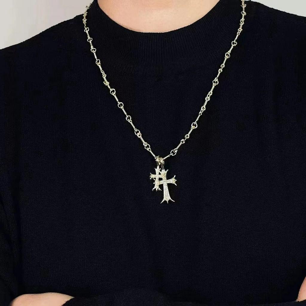 สร้อยคอรูปหัวใจกากบาทยาวอินเทรนด์บุคลิกภาพเหล็กไทเทเนียมระดับไฮเอนด์ไม่จางหายไปจี้เพชรไขว้