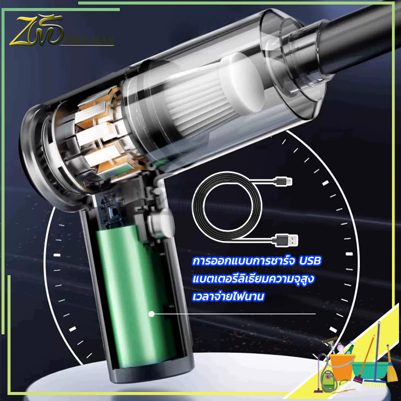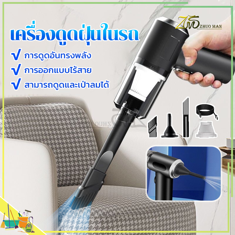 เครื่องดูดฝุ่นในรถ ไร้สายรถดูดฝุ่น ดูดฝุ่นแบบพกพา สำหรับใช้ขจัดฝุ่นละอองในรถยนต์และห้องโดยสาร ภายในบ้าน เตียง