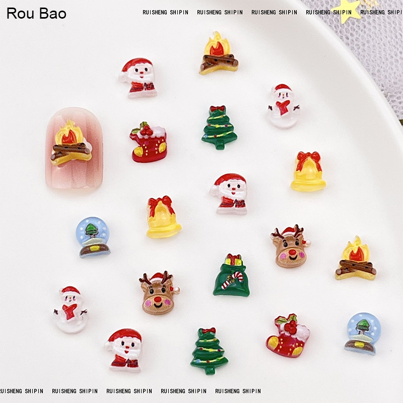 Rou Bao 50 ชิ้นเล็บ Mini ขนาดคริสต์มาสน่ารักการ์ตูน Santa Claus Bonfire Elk เรซิ่นเล็บ Art DIY Charms ตกแต่ง