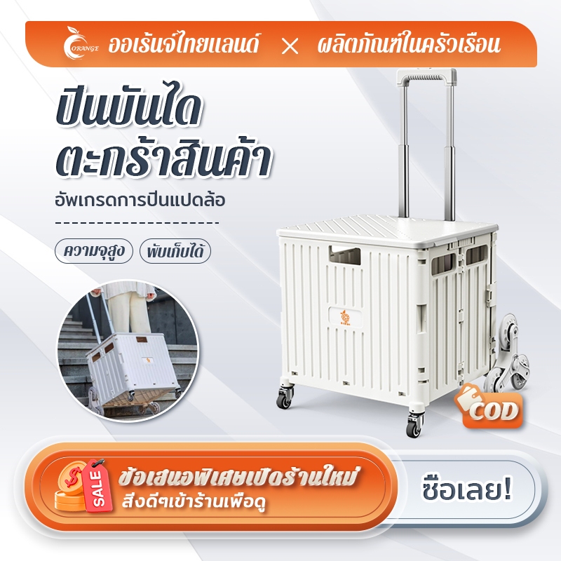 ORANGE ด้ามจับปรับเอียงได้ 45L/65Lรถเข็นช้อปปิ้ง ปีนล้อ รถเข็นจ่ายตลาดพับได้ พร้อมส่ง ด้ามจับปรับเอียงได้ รถเข็นของ