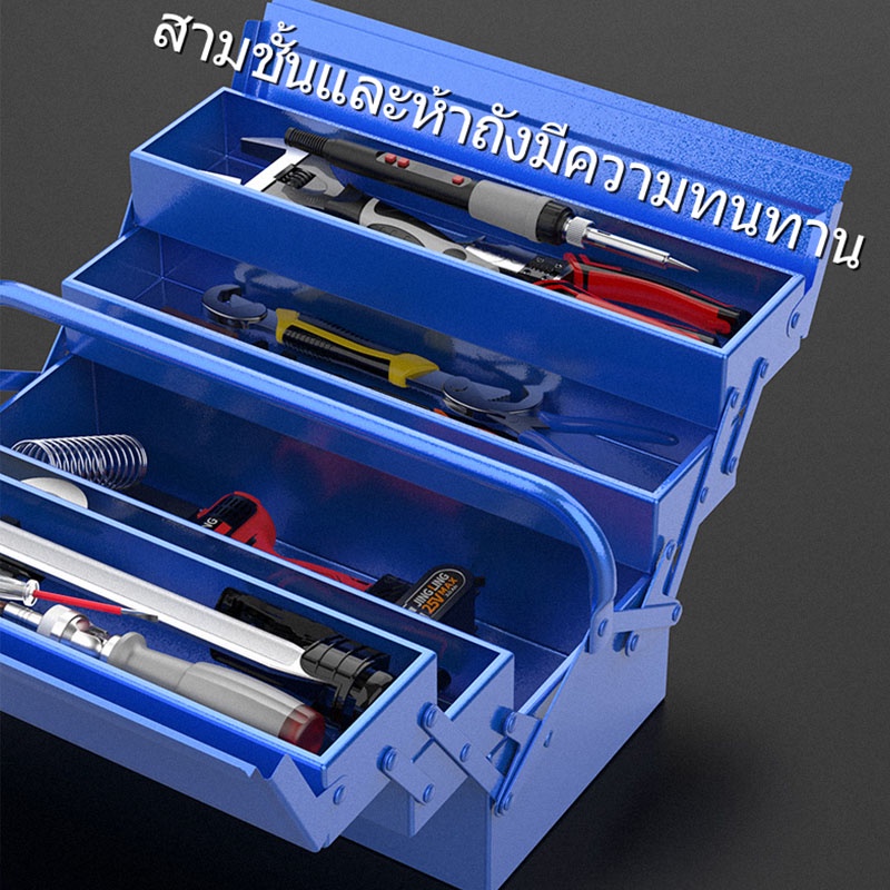 กล่องเครื่องมือ 21นิ้ว 3ชั้น (สีน้ำเงิน) เหล็กหนา ทนทาน Tool Box มีห่วงใส่กุญแจกันหาย