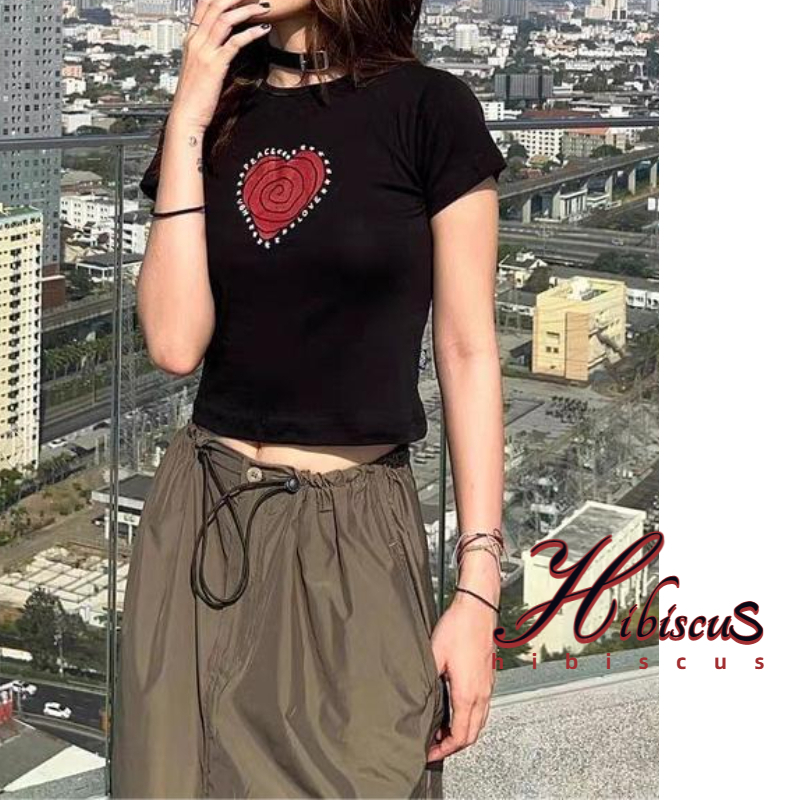 [เส่งจากโรงงาน-ออก24ชั่วโมง OOOK baby tee เสื้อเบบี้ทีลายวน เสื้อครอปท็อป แขนสั้น พิมพ์ลายหัวจ
