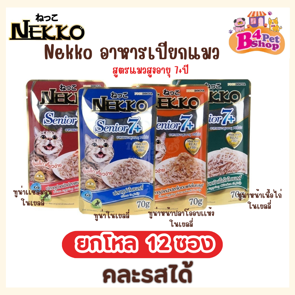 (ยกโหล 12 ซอง) Nekko เน็กโกะ อาหารเปียก สำหรับแมวสูงอายุ 7+ ขึ้นไป ขนาด 70 กรัม (คละรสได้)