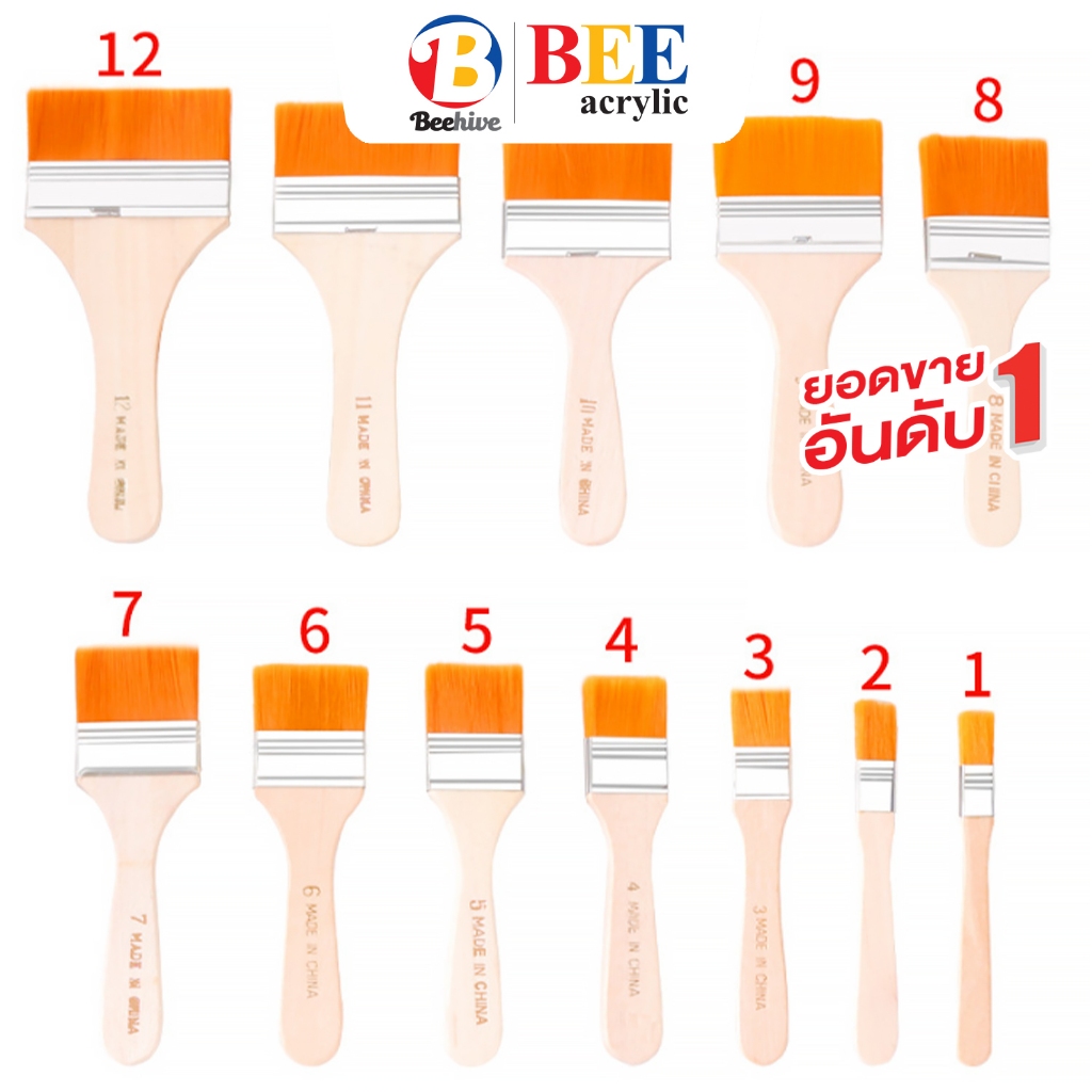 แปรงทาสี แปรงแบน ด้ามไม้ 1 ด้าม มีให้เลือกเบอร์ 1-12 เบอร์ 1 กว้าง 1.1 ซม. เบอร์ 2 กว้าง 1.4 ซม. เบอร์ 3 กว้าง 2 ซม. เบอร์ 4 กว้าง 3 ซม. เบอร์ 5 กว้าง 3.5 ซม. เบอร์ 6 กว้าง 4.1 ซม. เบอร์ 7 กว้าง 4.5 ซม. เบอร์ 8 กว้าง 4.7 ซม. เบอร์ 9 กว้าง 6.3 ซม. เบอร์ 10 กว้าง 6.5 ซม. เบอร์ 11 กว้าง 7