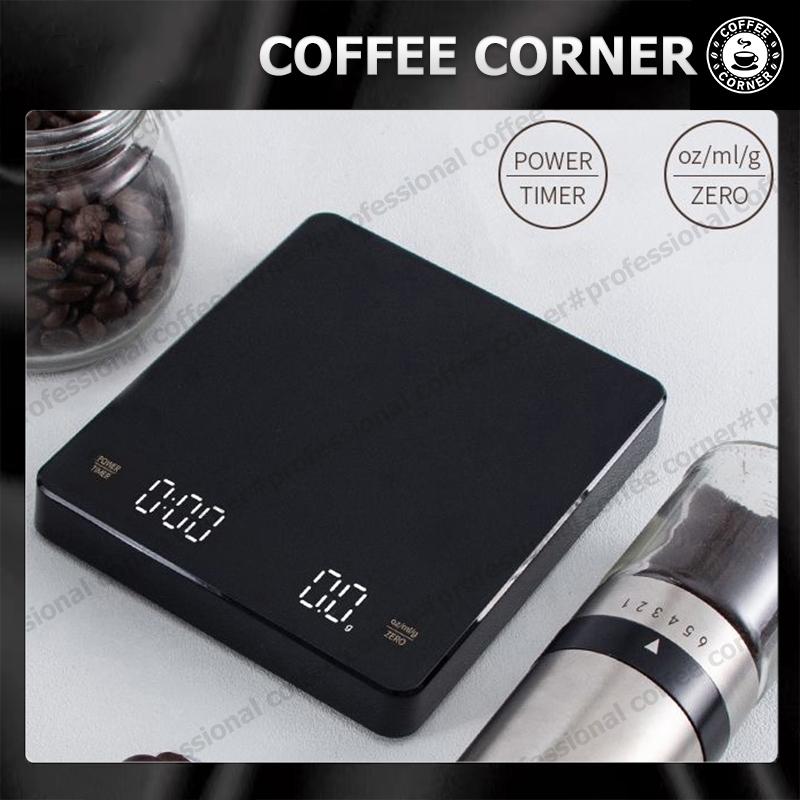 【สินค้าพร้อมส่ง】เครื่องชั่งกาแฟ ตาชั่งกาแฟ 3kg/0.1g มีฟังชั่นชดเชยน้ำหนัก จอLED มีแผ่นซิลิโคนกันลื่น เครื่องชั่งดิจิตอล ชาร์จ USB