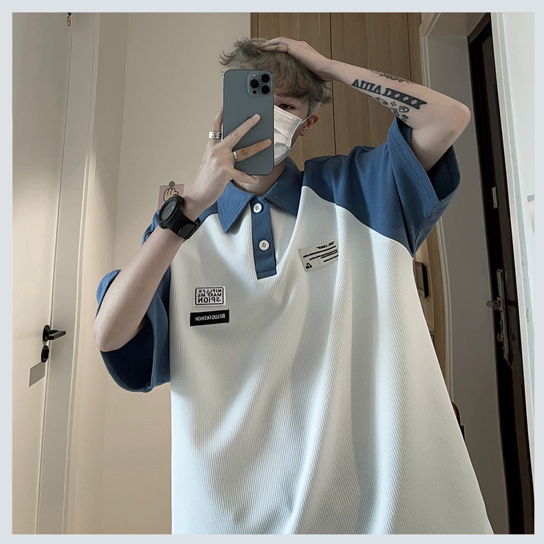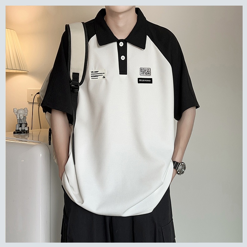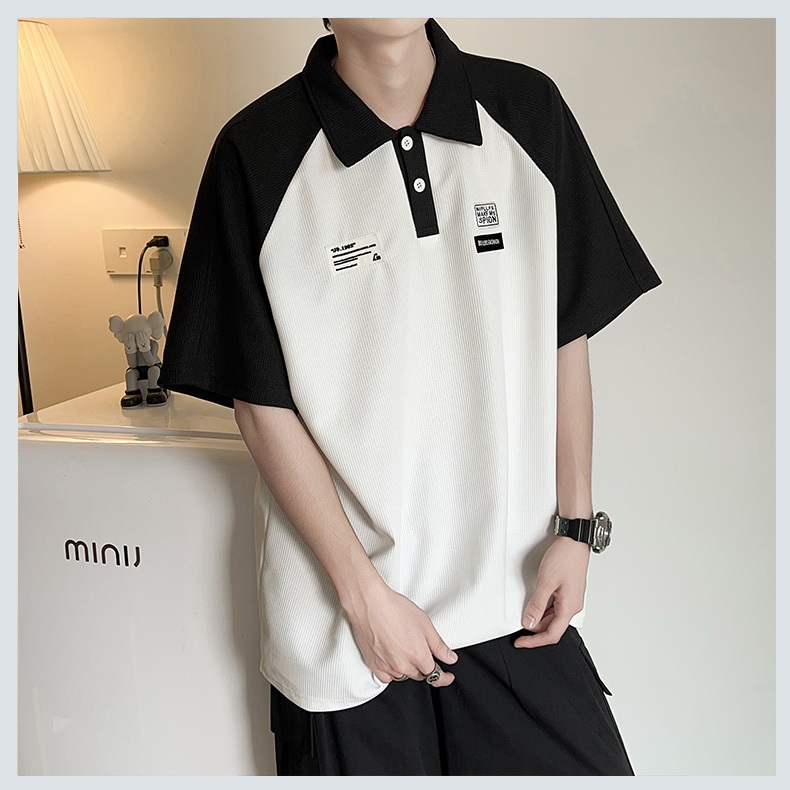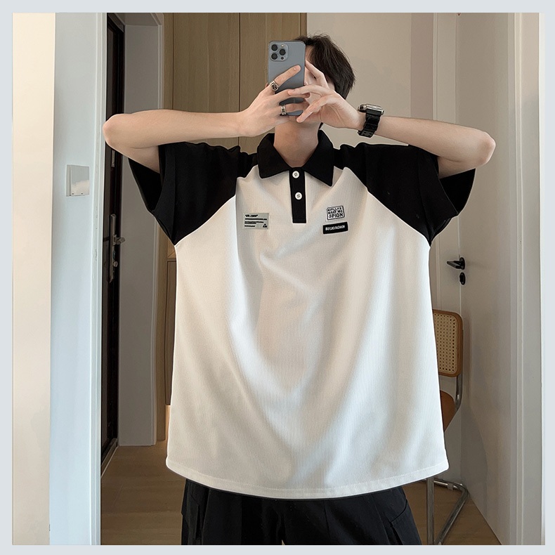 ⚡️Proman⚡️ เสื้อโปโลแขนสั้น ทรงหลวม ขนาดใหญ่ แฟชั่นฤดูร้อน สไตล์เกาหลี สําหรับผู้ชาย