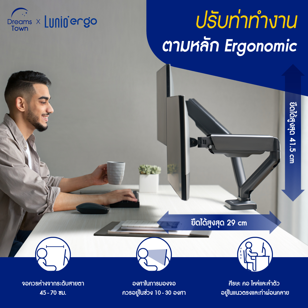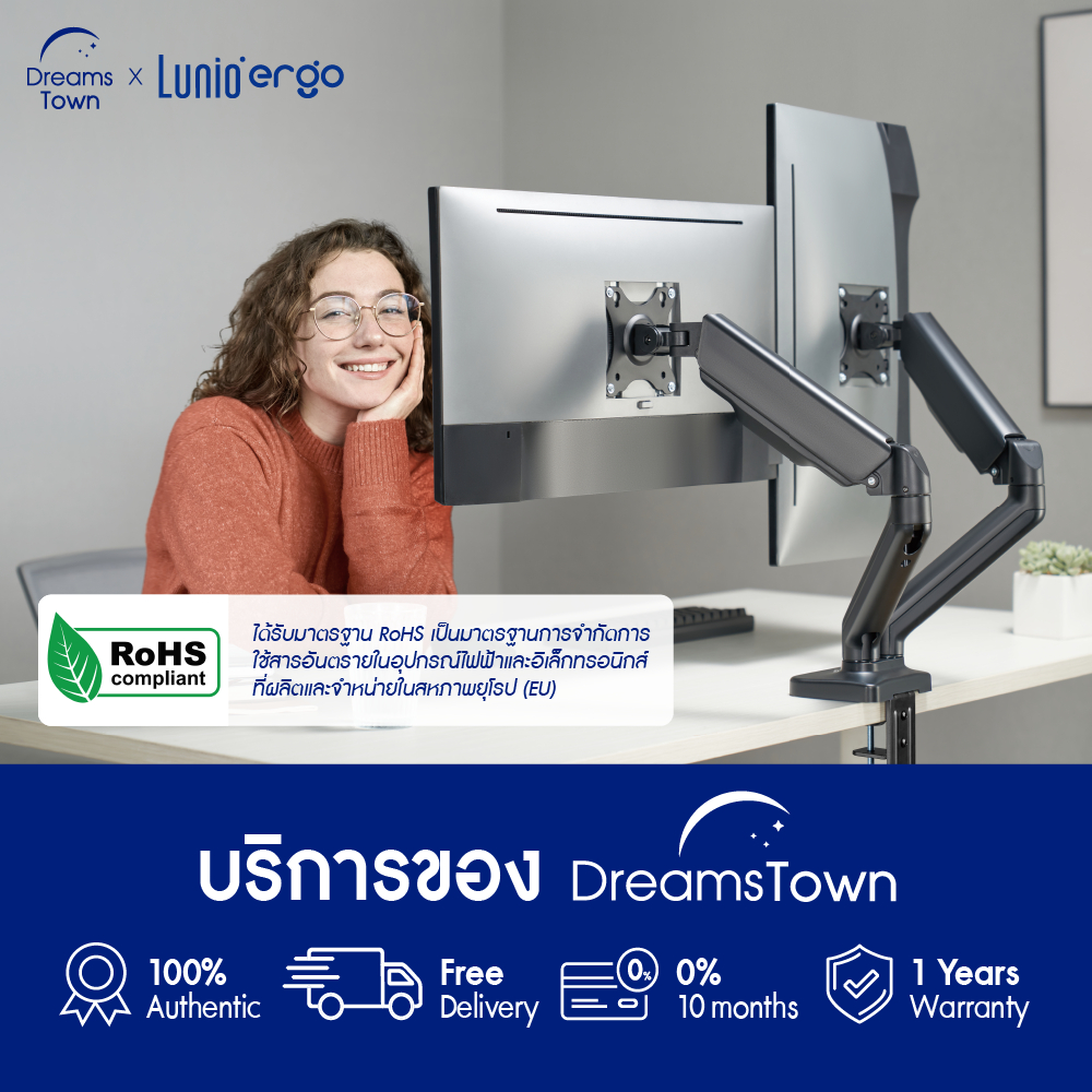 ✨Lunio Ergo Monitor Arm Cybot แขนจับจอ ขาตั้งจอคอม ปรับองศาจอการทำงานได้360องศา ลดความเสี่ยงจากการปวดคอ บ่า ไหล่ พร้อมทั้งช่วยปรับท่านั่งให้ถูกสรีรศาตร์ Dreamstown แบรนด์คุณภาพชั้นเยี่ยมที่รวมไว้ให้ในที่เดียว เราไม่ผ่านตัวกลาง ไม่บวกราคาเพิ่ม และมีหลายสาขา ไม่ว่าคุณจะเป็นใคร อยู่ที่ไหน ก็ซื้อได้ง