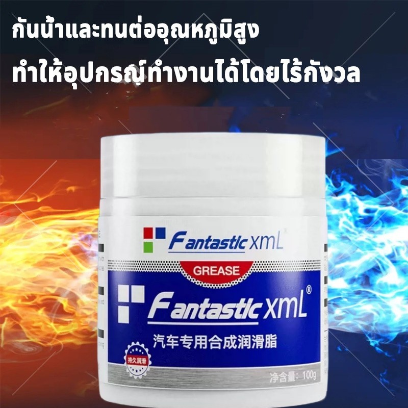 จาระบีสีขาว FantasticxmL เป็นน้ำมันหล่อลื่นคุณภาพสูงชนิดหนึ่ง  ใช้สำหรับการหล่อลื่นและงานซ่อมบำรุงเครื่องกลและอุปกรณ์ต่างๆ  ขนาดของสินค้านี้คือ 200g  ใช้สูตรทางเทคนิคขั้นสูง  ทนต่อความร้อนได้ถึง 200°C  กันน้ำได้  ปกป้องเครื่องในสภาพแวดล้อมที่เลวร้ายได้อย่างมีประสิทธิภาพ อันดับแรก  มาดูคุณสมบัติสินค