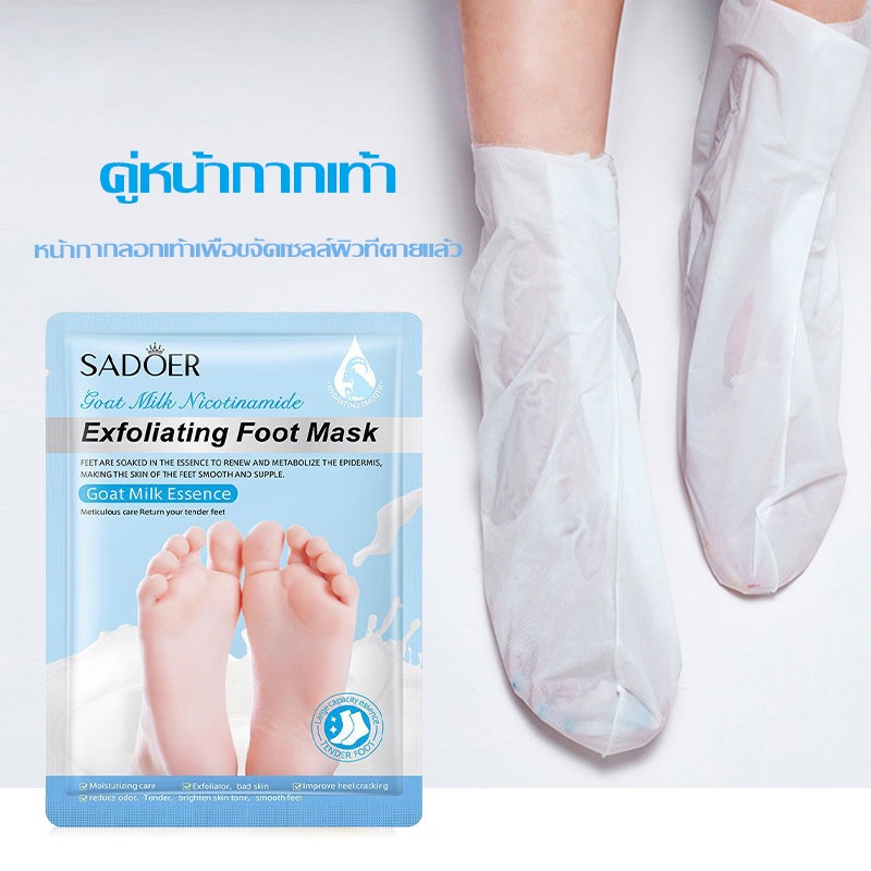 ... ากยิ่งขึ้นและลดริ้วรอยและความหยาบกร้าน - บำรุงผิว ให้ความชุ่มชื่น ปรับสภาพผิวให้สมดุล - ขจัดเซลล์ผิวที่ตายแล้ว - มีสารต้านอนุมูลอิสระ ช่วยให้เซลล์ผิวมีความแข็งแรง ผิวพรรณสดใส ปริมาณ 35ml วิธีใช้ 1.ล้างเท้าหรือมือให้สะอาด 2.แกะซองมาส์ก ใช้กรรไกรตัดซองมาส์กก่อนใช้ 3.สวมแผ่นมาส์กไว้ที่มือ หรือ เท้า ทิ้งไว้ 25-45 นาที 4 ล้างมือและเท้าด้วยน้ำสะอาด
