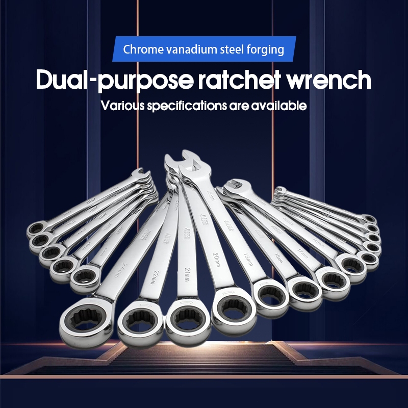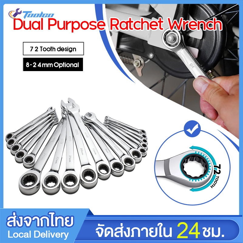 MeeGoo ประแจแหวนข้าง ปากตายข้าง เบอร์ 8 10 12 14 17 19 Dual Purpose Ratchet Wrenchพกพาเก็บง่าย