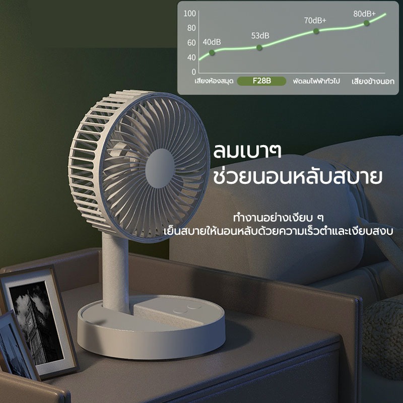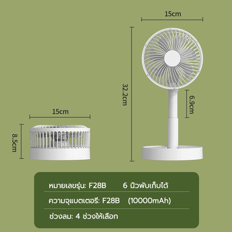 ใช้ได้ 64 ชั่วโมง F28 พัดลมไร้สาย พับเก็บได้ ปรับสั้น-ยาวได้ แบตอึด ปรับแรงลม 4 ระดับ ชาร์จ USB พัดลมพับเก็บได้
